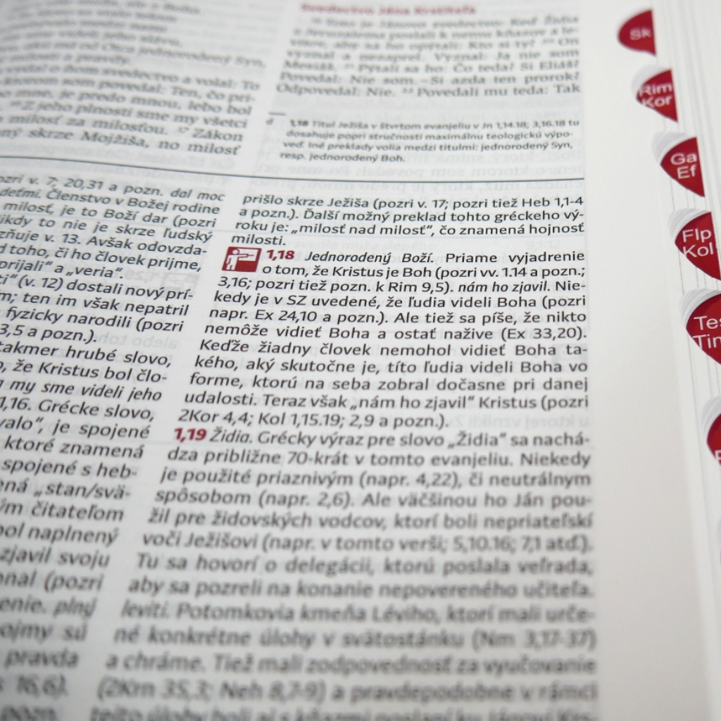 The Study Bible is a complex work that is the result of several years of work by a whole team of translators, theologians, editors, proofreaders and graphic designers. The Porta Libri publishing house (PL) and the Slovak Bible Society (SBS) joined forces to make this project possible.