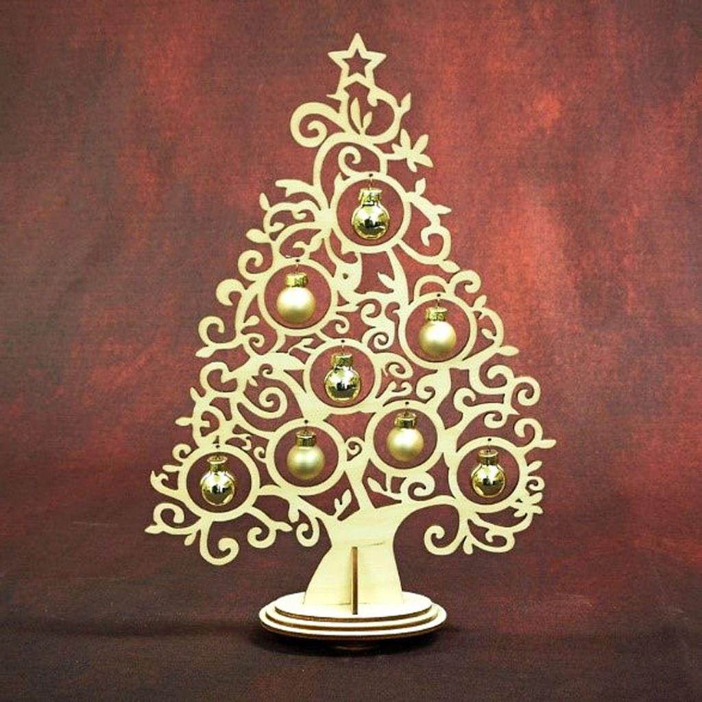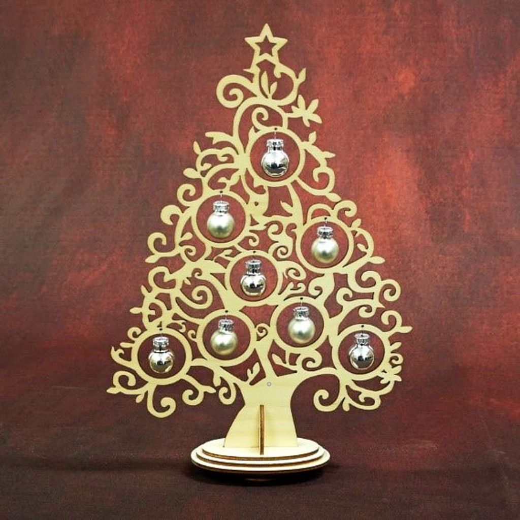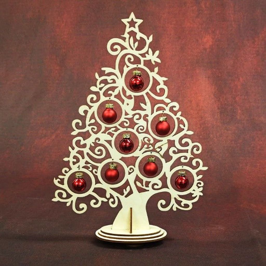 Wooden Christmas tree with Baubles is beautifully carved from massive wood and decorated with radiant baubles. Available in gold, silver or red option. Made in Italy Size: 30cm