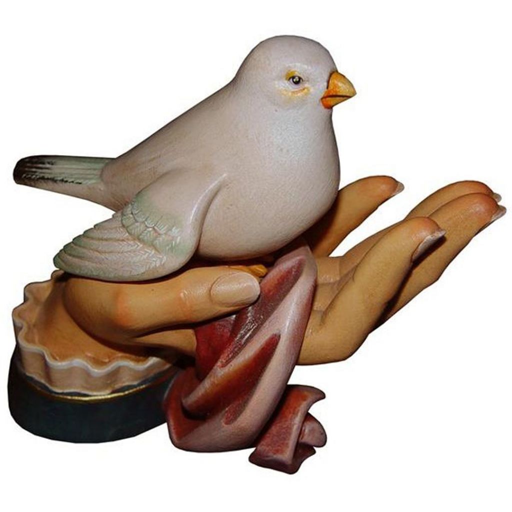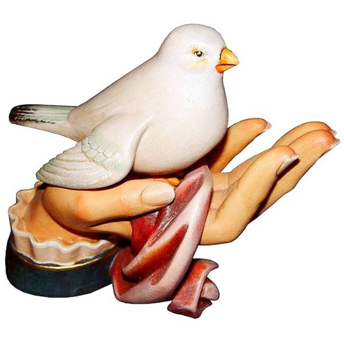 The Decorative Hand with Dove is beautifully hand-carved from wood, gilded and hand-painted with soft oil paints. Available in color or natur (natural unpainted wood) in various sizes.