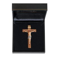 Wooden Rosary Cross with case is beautifully carved from maple wood, hand painted with oil paints and carefully gold gilded.
