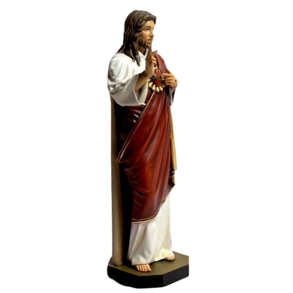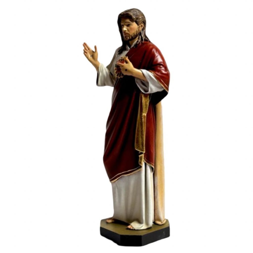Elevate your spiritual space with this Sacred Heart of Jesus statue, a beautifully detailed hand-painted figurine crafted with devotion and artistry.