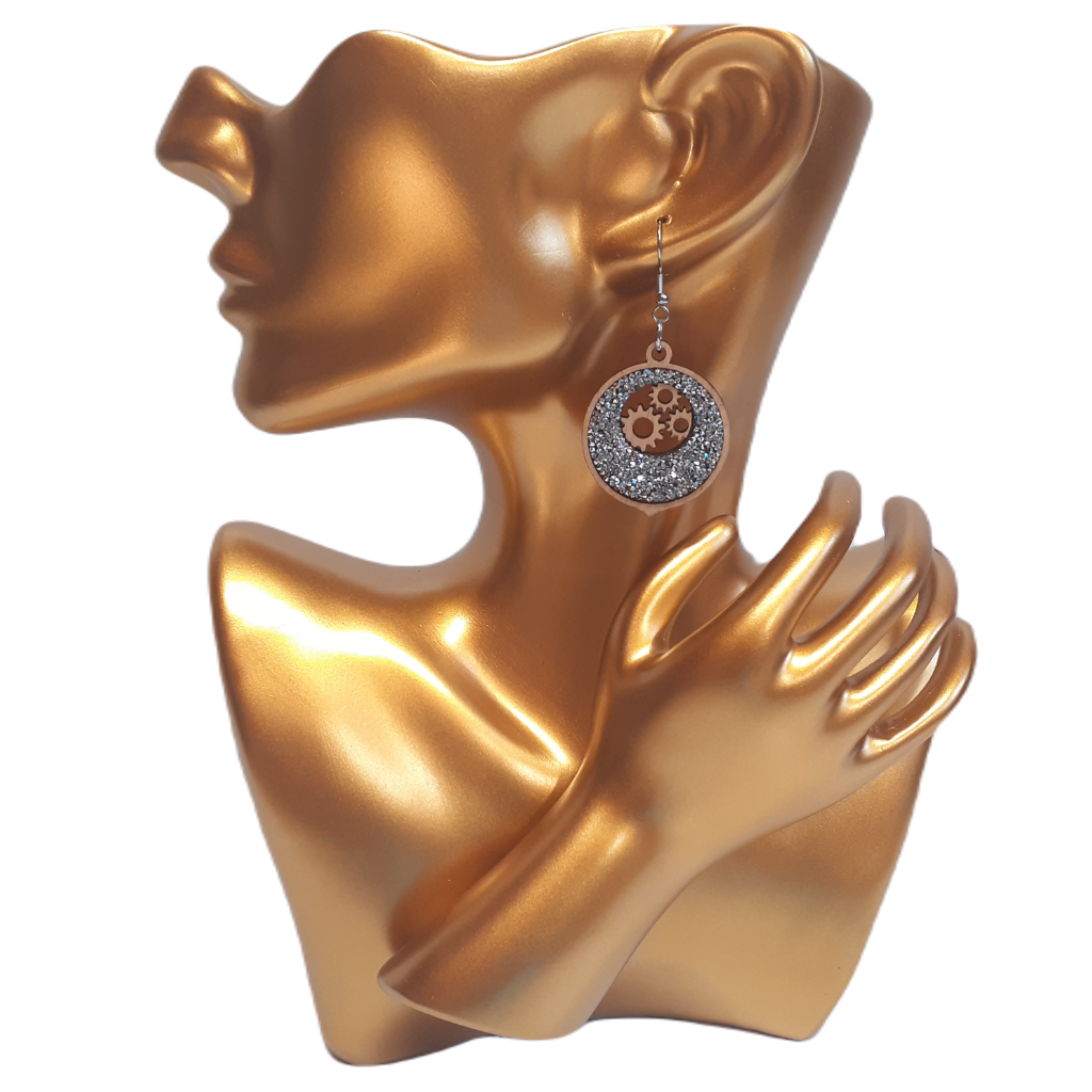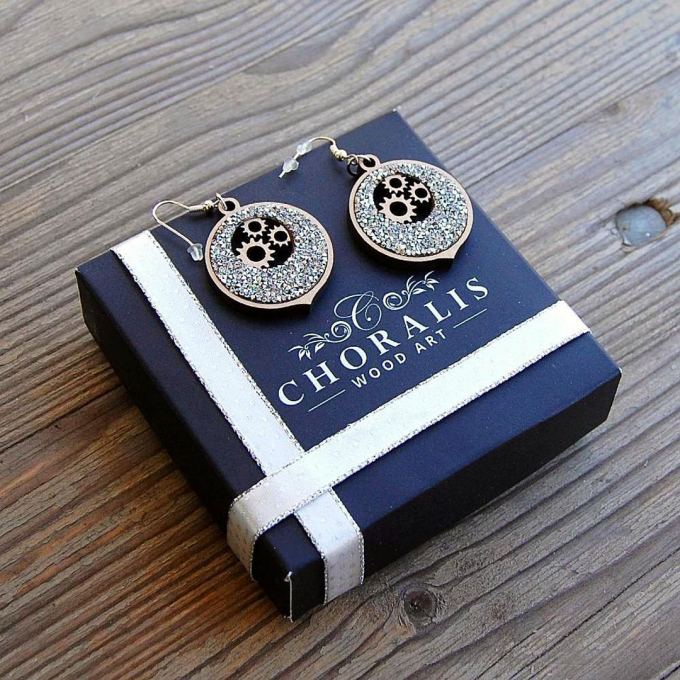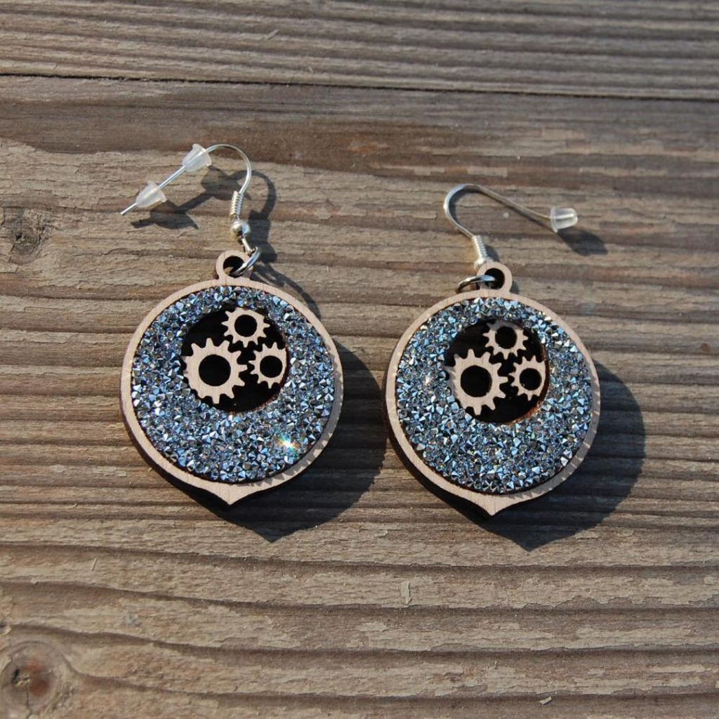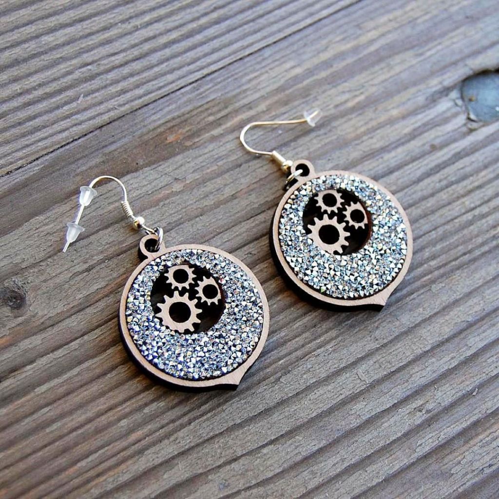 Handmade Wooden Crystal Gear Earrings with crystal . Beautifully handcrafted to the last detail these stunning earrings make the perfect unique gift.
