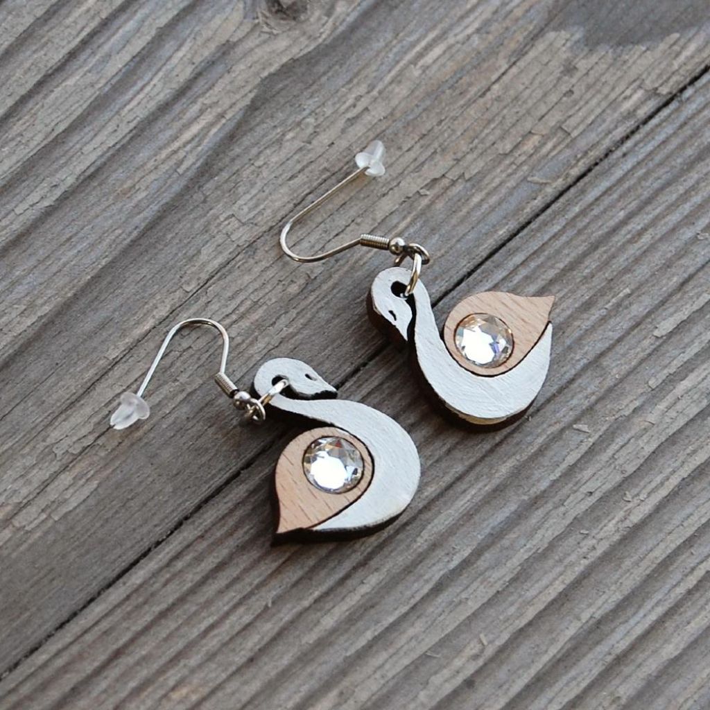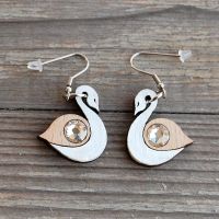 Handmade Wooden Crystal Swan Earrings with crystal . Beautifully handcrafted to the last detail these stunning earrings make the perfect unique gift.