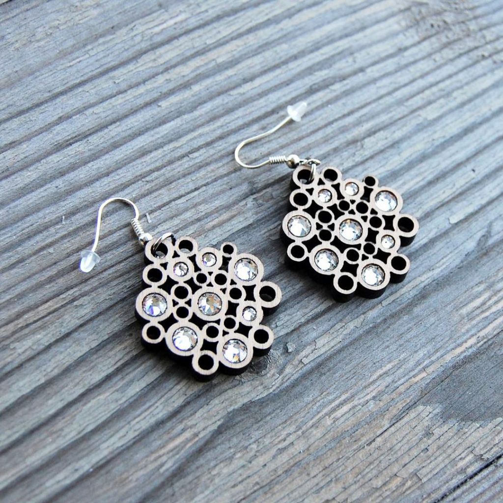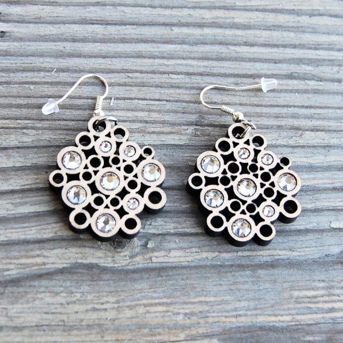 Handmade Wooden Earrings Circles crystal. Beautifully handcrafted to the last detail these stunning earrings make the perfect unique gift.