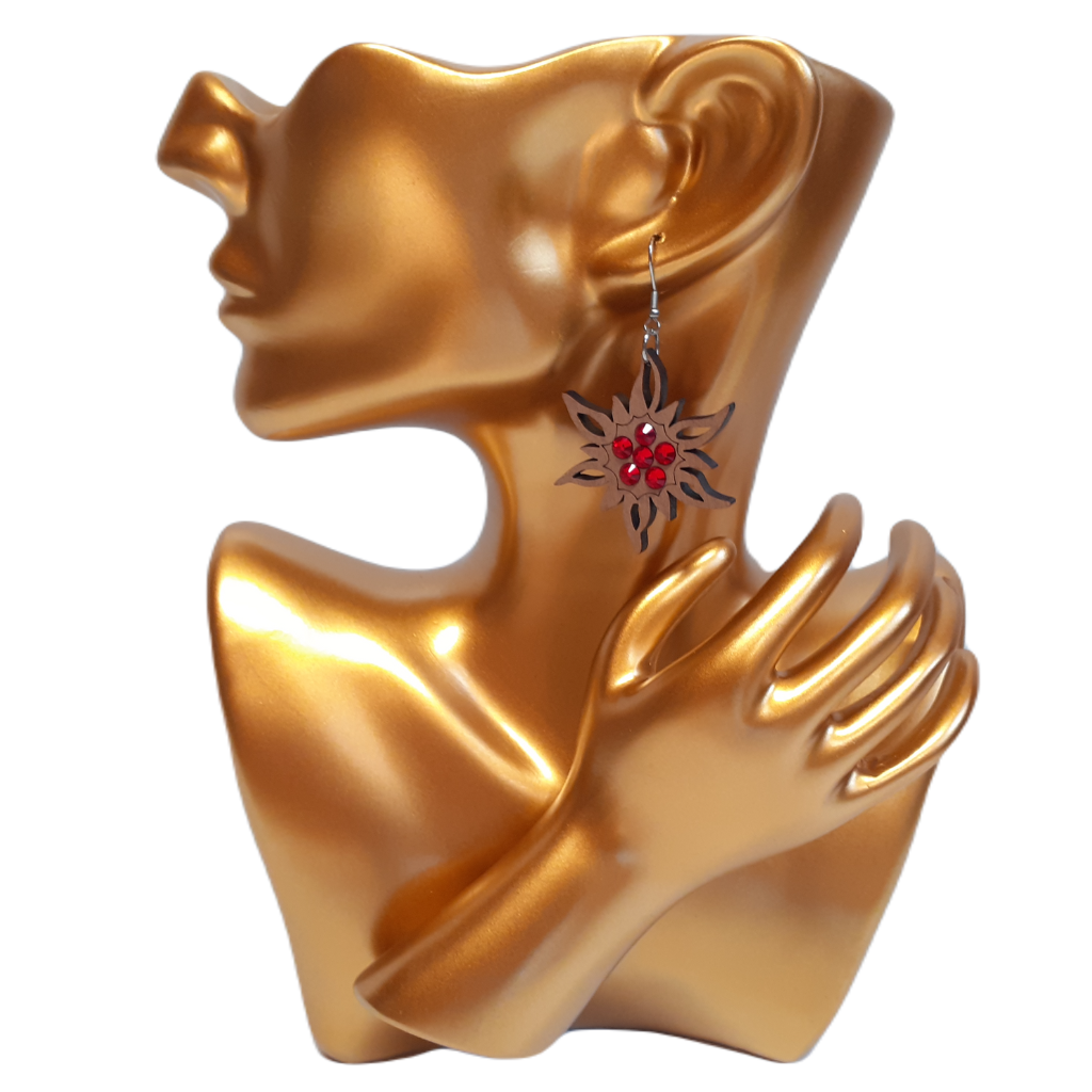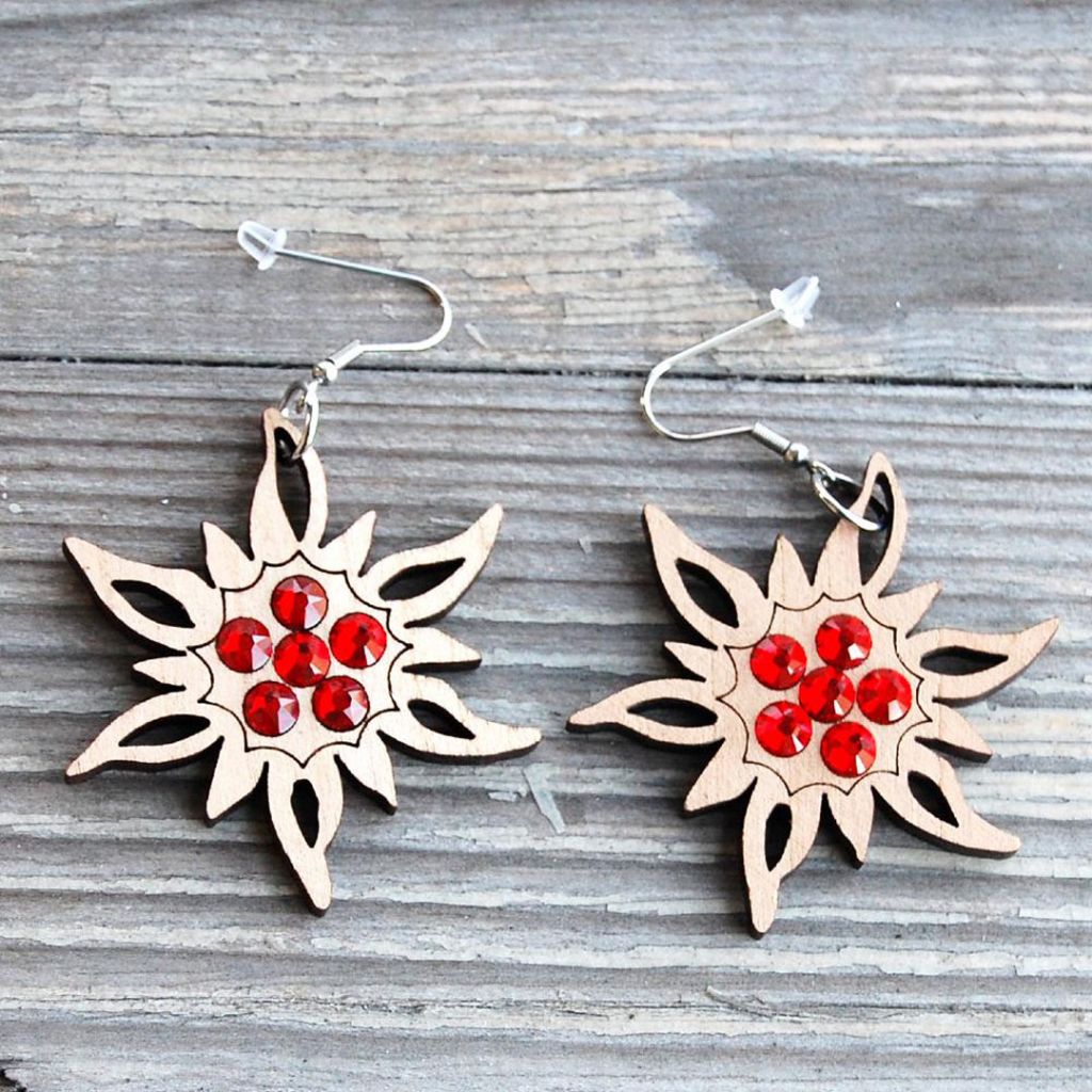 Handmade Wooden Earrings Edelweiss with crystal. Beautifully handcrafted to the last detail these stunning earrings make the perfect unique gift.