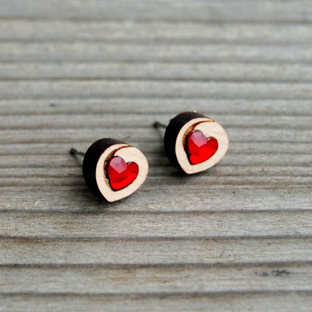 Handmade Wooden Heart Earrings with crystal. Beautifully handcrafted to the last detail these stunning earrings make the perfect Unique Gift. Gift boxed.