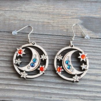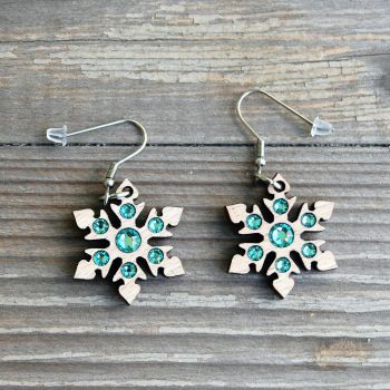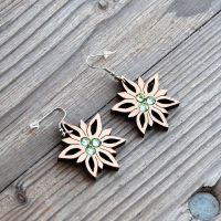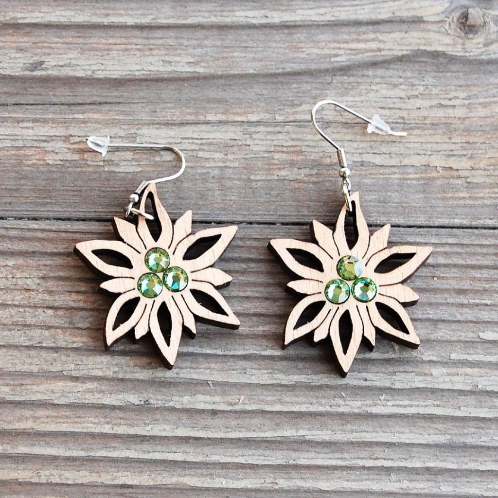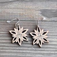 Handmade Wooden Earrings Edelweiss with crystal. Beautifully handcrafted to the last detail these stunning earrings make the perfect Unique Gift.