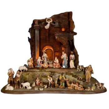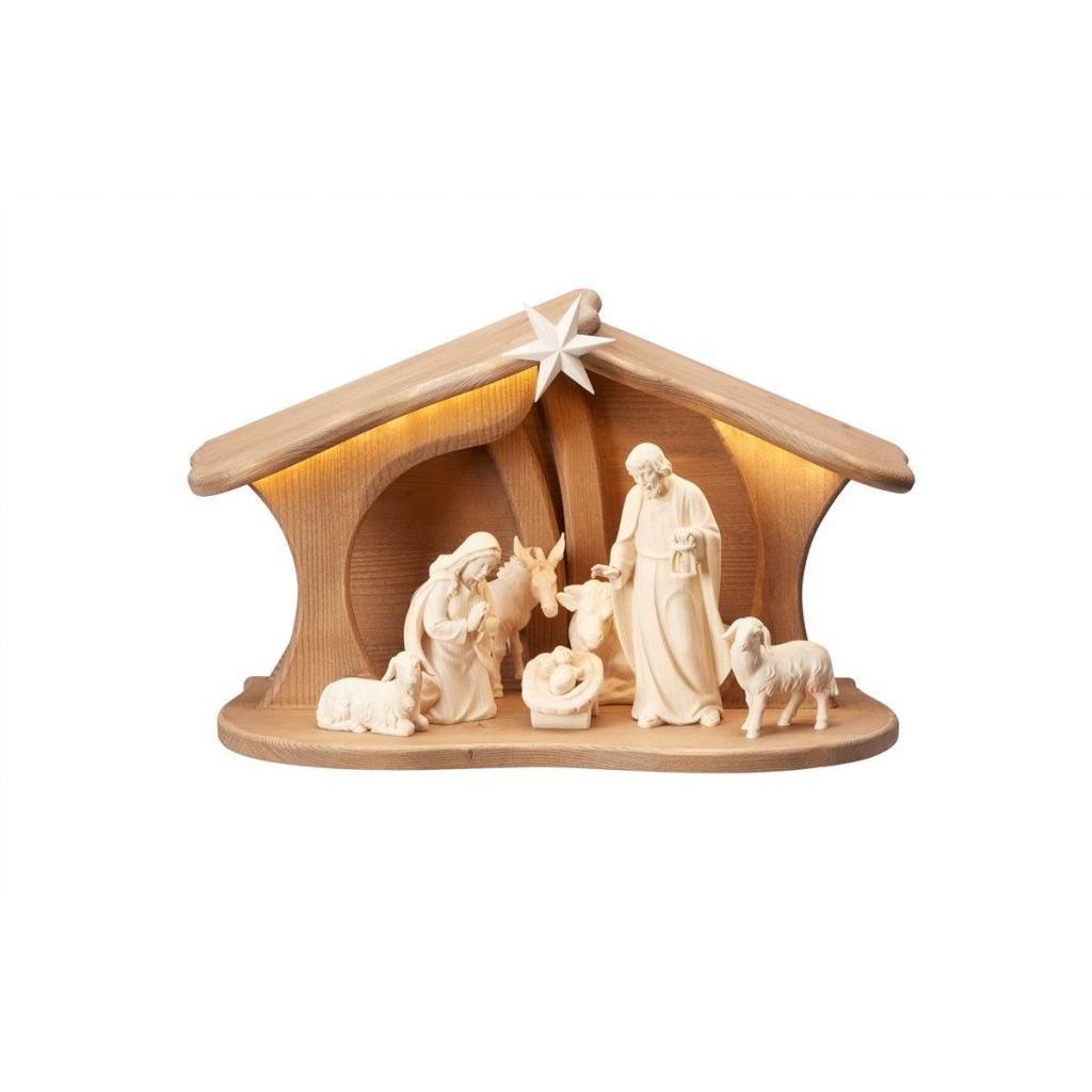 Pôvabné zobrazenie vianočnej jasličkovej scény vytvorené, aby pridalo teplo a radosť do vášho domova počas sviatočného obdobia. Tieto krásne navrhnuté drevené domce oslavujú ducha Vianoc a zároveň prezentujú zručnosť a precíznosť majstrovského tesárstva. Drevený betlehem je vyrobený z kvalitného dreva, ktorý je elegantným doplnkom k vašej sviatočnej výzdobe. Figúrky sú ručne maľované olejovými farbami, ktoré oživujú jasličkovú scénu s množstvom detailov.