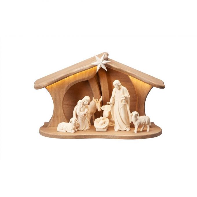 Pre tých, ktorí preferujú prirodzené čaro dreva, verzia prírodné drevo umožňuje prezentovať surové, nemaľované drevo, čím zvýrazňuje detail materiálu. Vyberte si medzi bohato farebnou alebo prírodnou edíciou a nechajte sa okúzliť zručnosťou a umeleckosťou, ktorá sa vložila do vytvárania tohto exkluzívneho diela. Navoďte si už dnes očarujúci zázrak tohto jedinečného dreveného betlehema vyrobeného s láskou uctievaného zvyku.