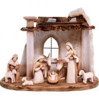 Pôvabné zobrazenie vianočnej jasličkovej scény vytvorené, aby pridalo teplo a radosť do vášho domova počas sviatočného obdobia. Tieto krásne navrhnuté drevené domce oslavujú ducha Vianoc a zároveň prezentujú zručnosť a precíznosť majstrovského tesárstva. Drevený betlehem je vyrobený z kvalitného dreva, ktorý je elegantným doplnkom k vašej sviatočnej výzdobe. Figúrky sú ručne maľované olejovými farbami, ktoré oživujú jasličkovú scénu s množstvom detailov.