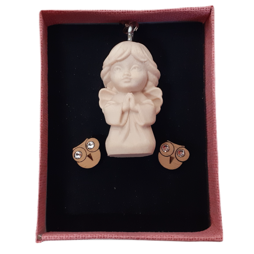 Nádherná darčeková sada drevených náušníc sovičiek a kľúčenky anjela je skvelou voľbou na každú príležitosť. Drevené náušnice sú ručne opracované do posledného detailu, doplnené časťami z chirurgickej ocele a krištáľom. Veľkosť náušníc je 1 cm. Drevená kľúčenka slnečného anjela vás bude viesť a ochraňovať na vašej ceste životom. Drevená kľúčenka je vyrobená z javorového dreva a veľkosť kľúčenky je 4,5 cm. Potešte seba alebo svojich blízkych unikátnou darčekovou sadov na každú príležitosť.