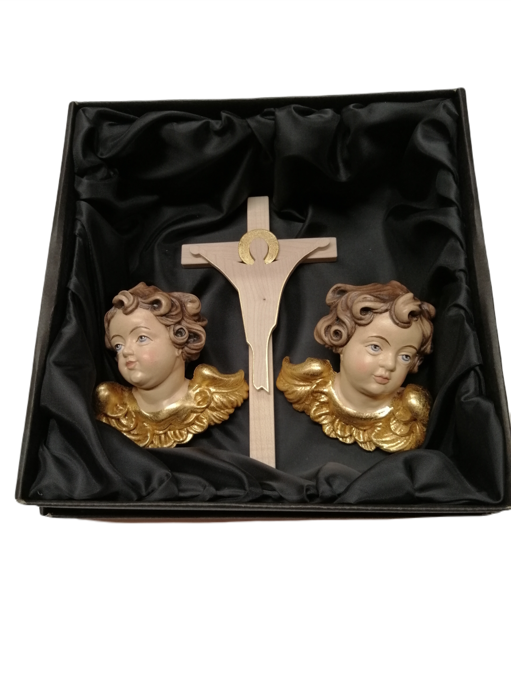 K tejto darčekovej sade získavate svadobný krížik zdarma. Svadobný krížik je vyrobený z kvalitného javorového dreva a zlátený plátkovým zlatom. Krásna spomienka na výnimočný deň na spoločnej ceste životom. Veľkosť anjelského páru je 10 cm a veľkosť svadobného kríža je 20 cm.