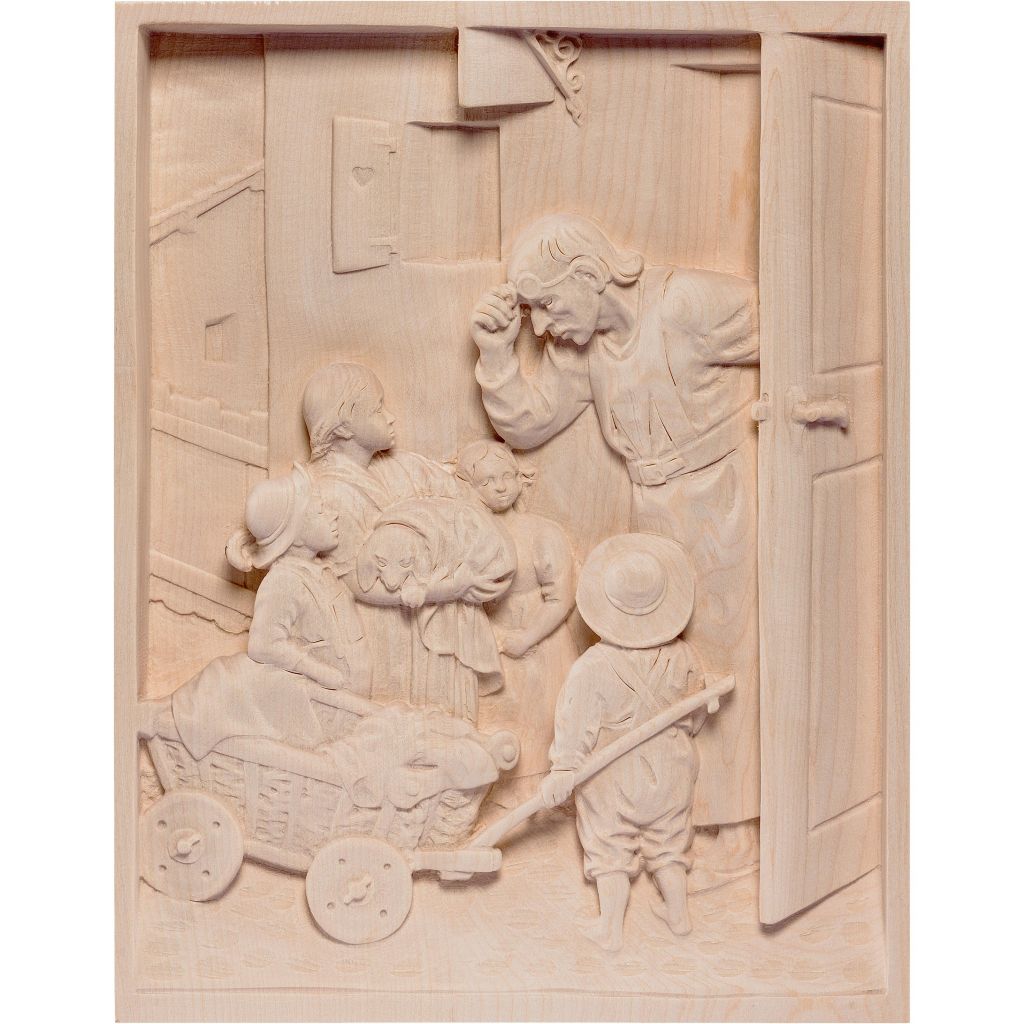 MATERIÁL: Všetky sochy a drevorezby do veľkosti 60 cm sú štandardne vyrezávané z vybraného horského javorového dreva, sochy veľkosti 60 cm alebo väčšie sú vyrezávané z lipového dreva (latinsky sacrum lingum), pokiaľ nie je uvedené inak.