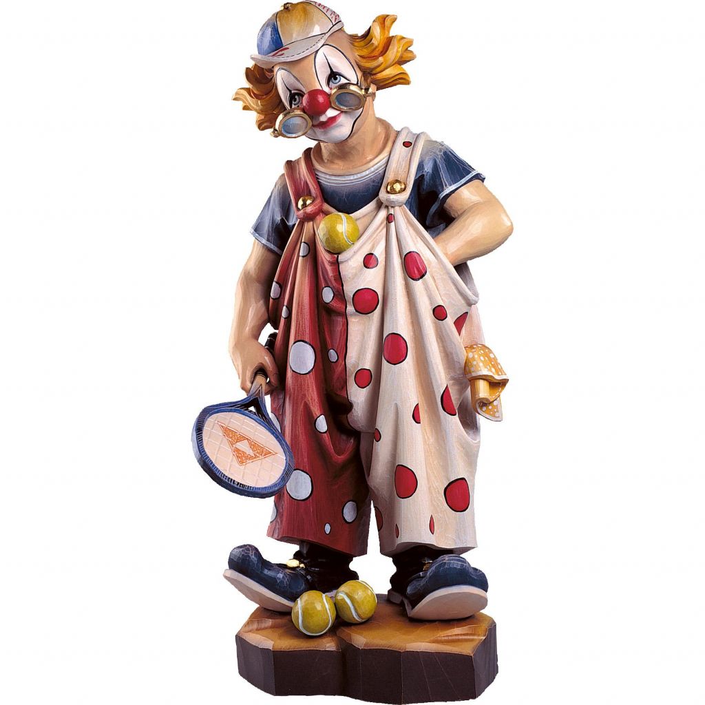 Klaun tenista drevená socha