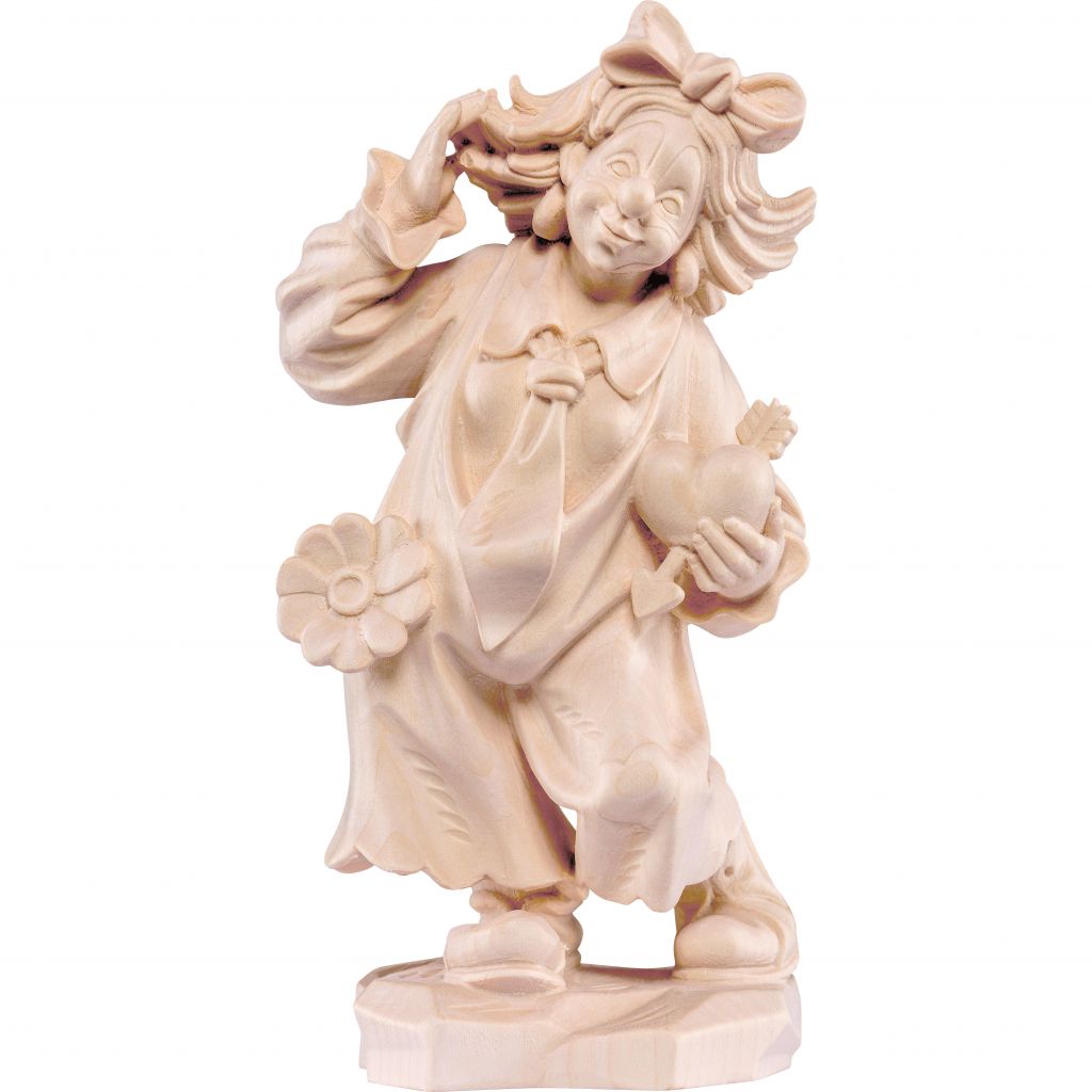Zaľúbený klaun drevená socha