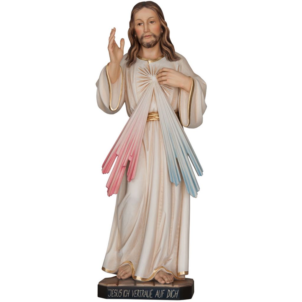 Drevená socha Božieho Milosrdenstva je nádherne vyrezaná z javorového dreva, ručne maľovaná jemnými olejovými farbami a zlátená plátkovým zlatom.