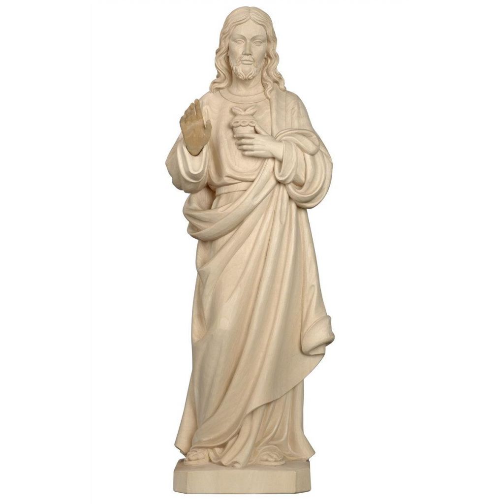 Drevená socha Najsvetejšie Srdce Ježišovo je nádherne maľovaná jemnými olejovými farbami a zlátená plátkovým zlatom. Dostupná vo farbe alebo prevedení natur (prírodné drevo) v rôznych veľkostiach.