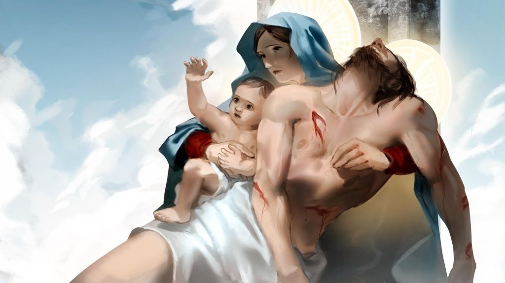 Medzi ústredné postavy patria Madona s dieťaťom, symbolizujúce čistotu a materskú lásku, a ukrižovaný Kristus, ktorý predstavuje obetu a vykúpenie.
