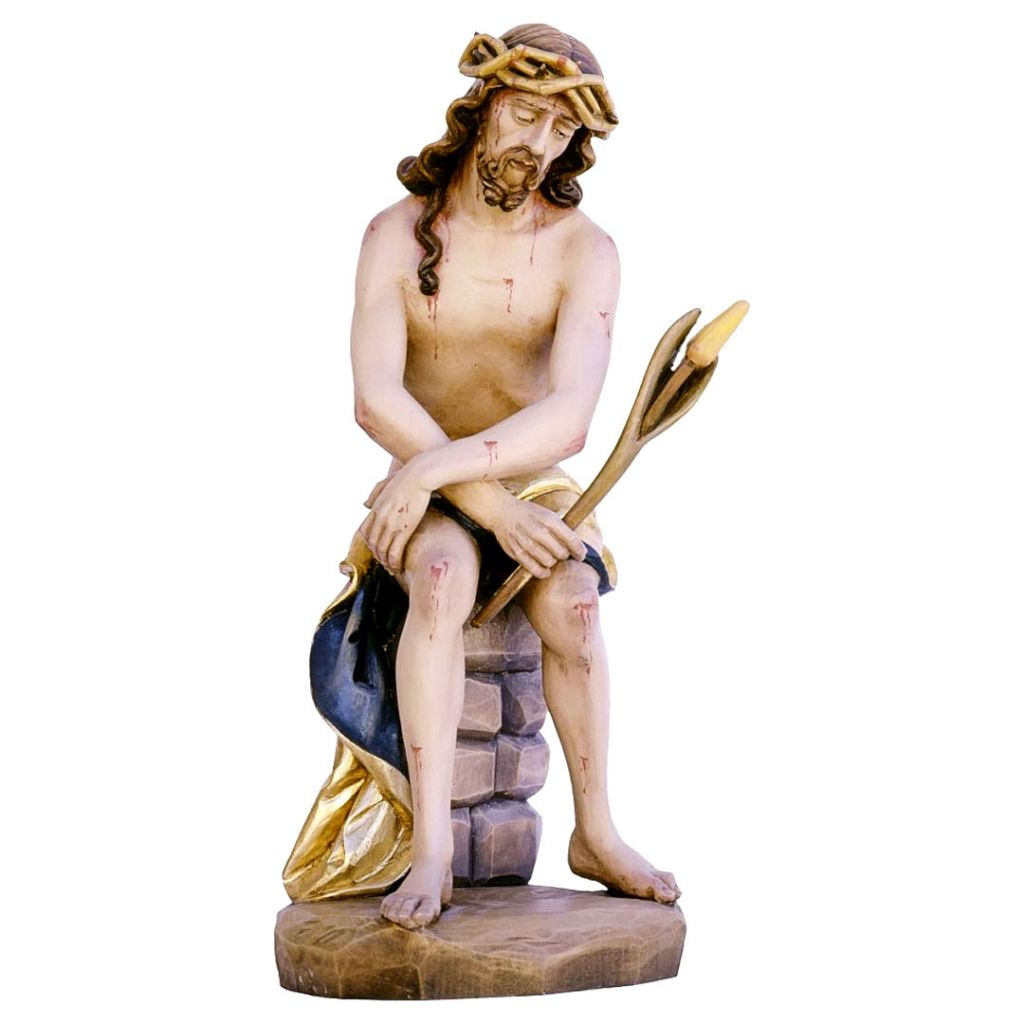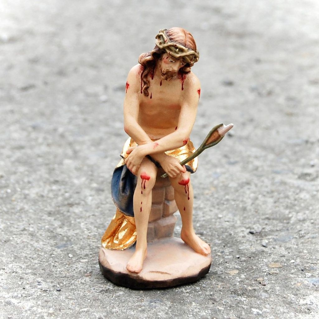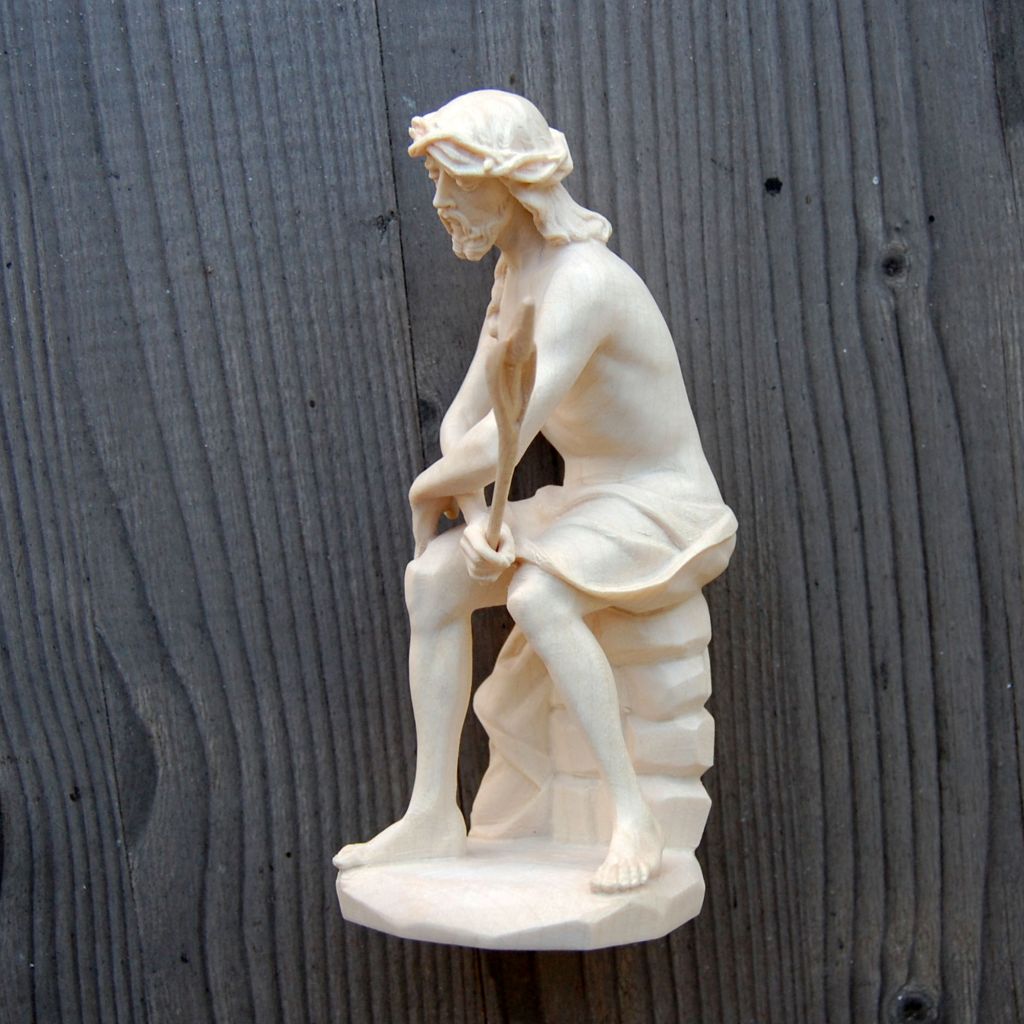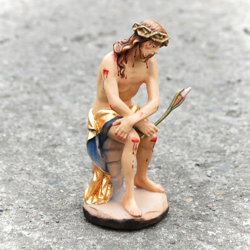 This is a very finely detailed wood figurine. I loved that I could choose a size, since I needed it to fit in with a display of other figurines. I got the unpainted, natural option, and although the stock image doesn't show it, it does include the reed "scepter" in Jesus' hand. It was wrapped separately from the rest of the figure, so be careful not to lose it when you unbox it. The whole thing was carefully packaged and arrived in perfect condition. It looks great in my Holy Week display!