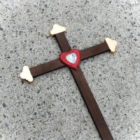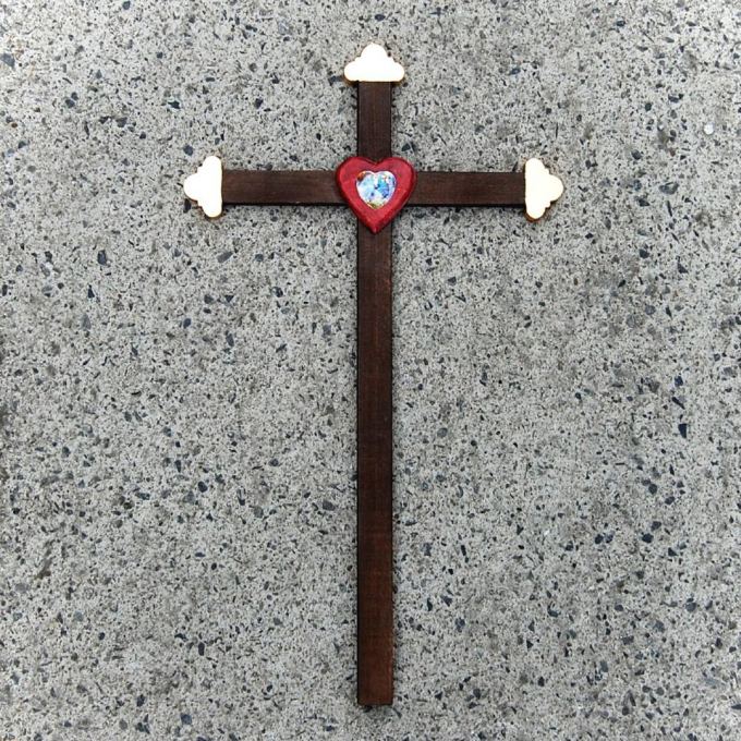 Tmavý Drevený Kríž s Krištáľovým Srdcom