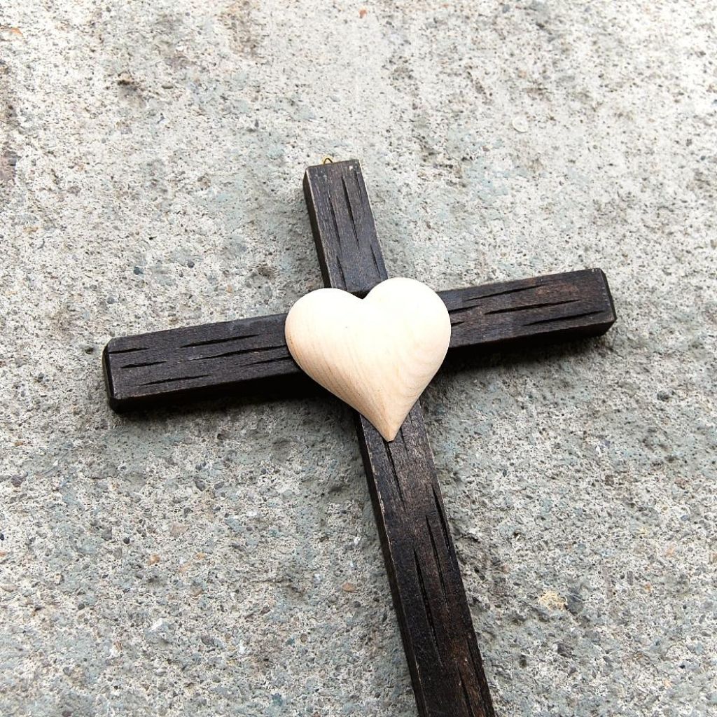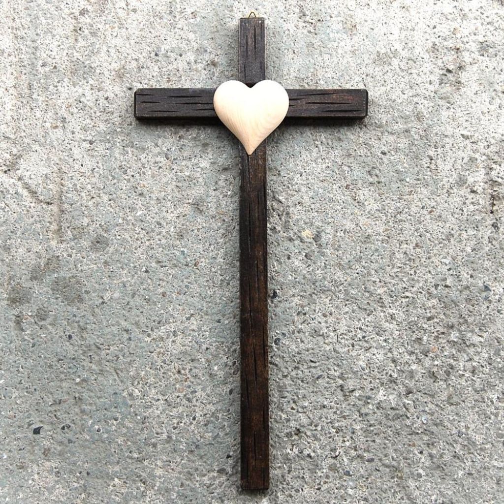 Tmavý Drevený Kríž so Srdcom