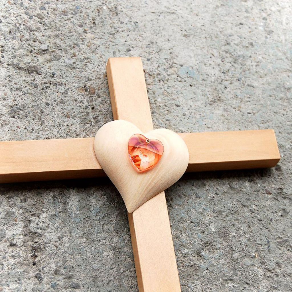 Nádherne opracované do posledného detailu, tieto kríže prinesú pokoj a mier do vášho života. Vhodné aj ako svadobný darček pre mladomanželov a ich nový domov. Veľký Drevený kríž s Krištáľovým Srdcom je ručne vyrobený z kvalitného javorového dreva a ozdobený českým brúseným krištáľovým srdcom.
