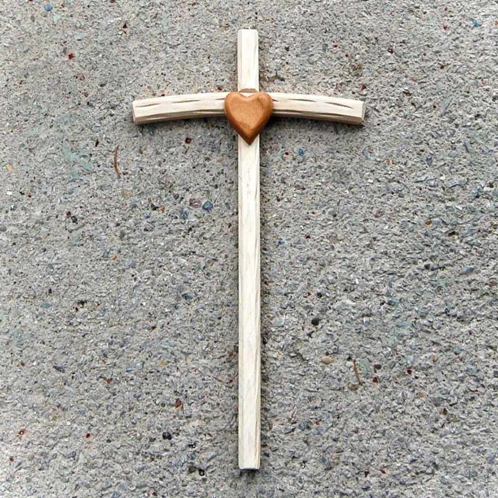 Veľkosť: 27cm výška  Materiál: Drevo - Krížik Lipa - Srdce Čerešňa.