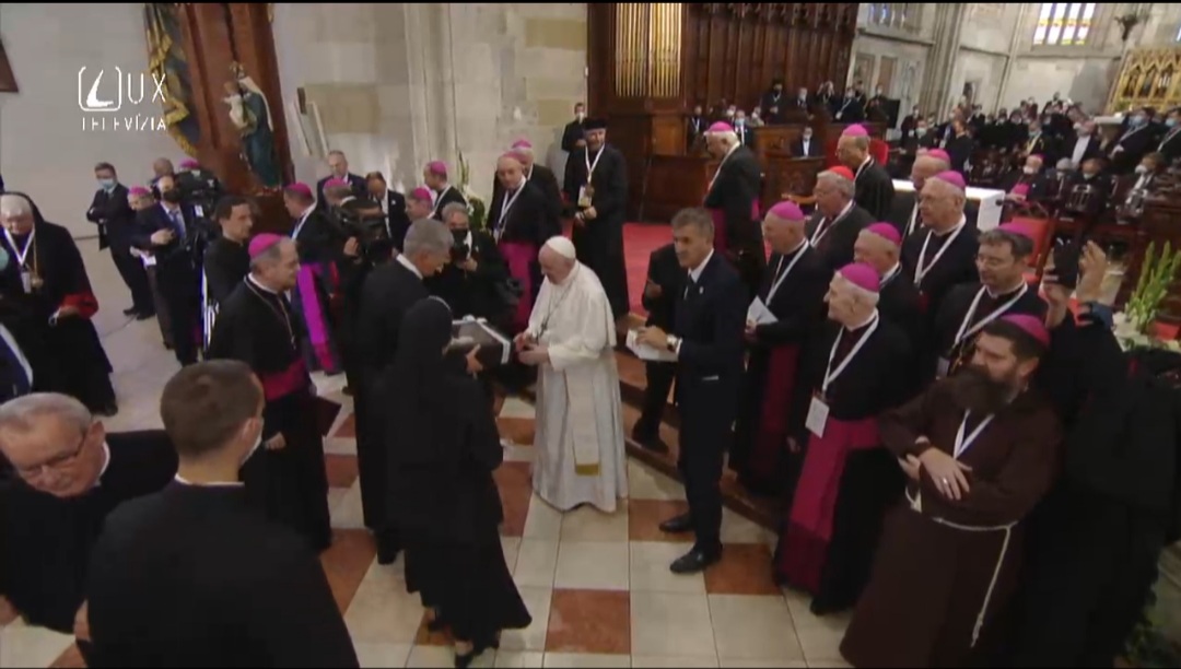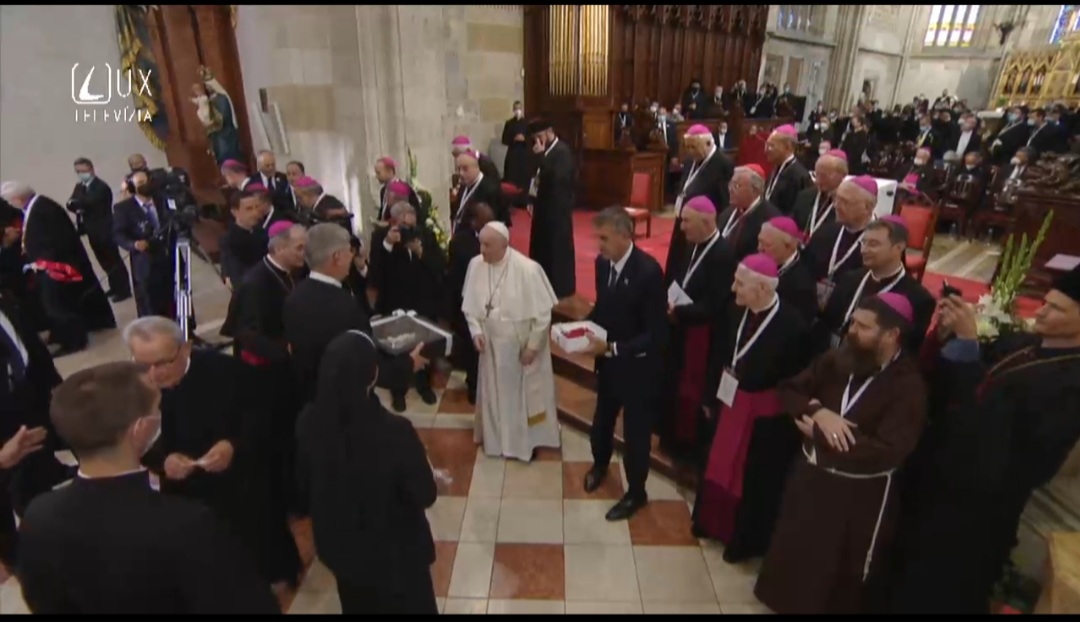 A tu si môžete prezrieť fotografie z odovzdávania daru pápežovi Františkovi z prenosu televízie LUX:
