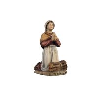 Drevená socha Bernadety Soubirousovej je nádherne maľovaná jemnými olejovými farbami a zlátená plátkovým zlatom. Dostupná vo farbe, alebo prevedení natur (prírodné drevo) v rôznych veľkostiach.