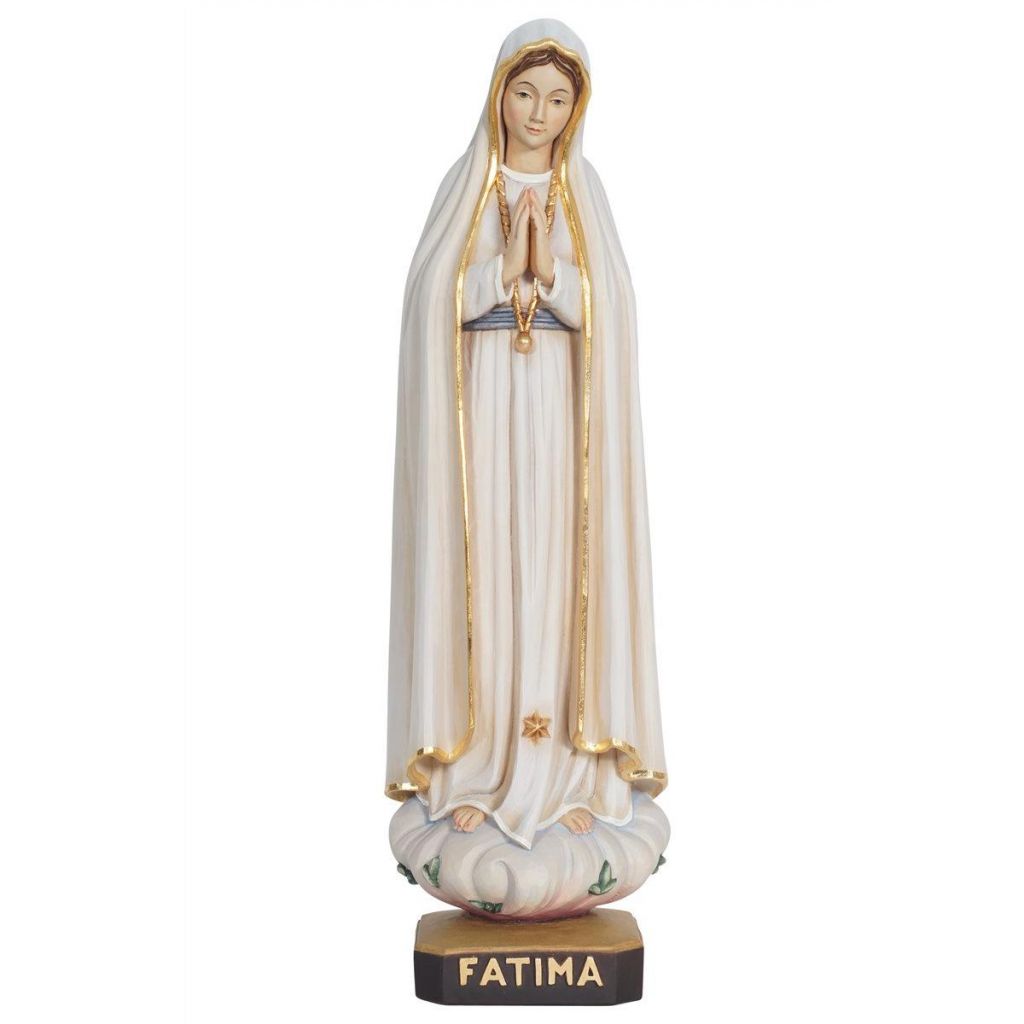 Drevená socha Panny Márie je nádherne maľovaná jemnými olejovými farbami a zlátená plátkovým zlatom. Dostupná vo farbe, alebo prevedení natur (prírodné drevo) v rôznych veľkostiach.