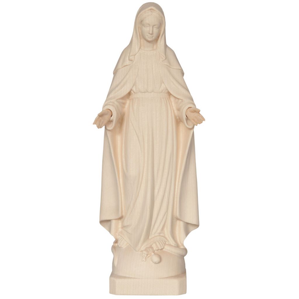 Drevená socha Nepoškvrnenej Panny Márie je nádherne vyrezaná z javorového dreva, ručne maľovaná jemnými olejovými farbami a zlátená plátkovým zlatom.