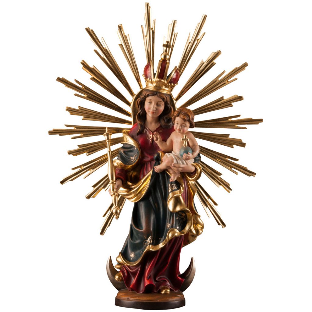 je nádherne vyrezaná z javorového dreva, ručne maľovaná jemnými olejovými farbami a zlátená plátkovým zlatom.