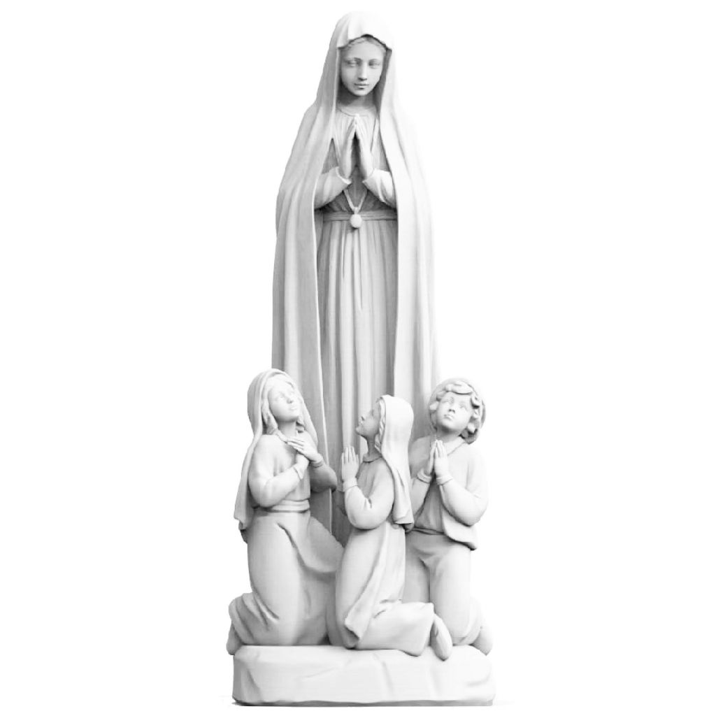 Panna Mária Fatimská s deťmi zo sklolaminátu