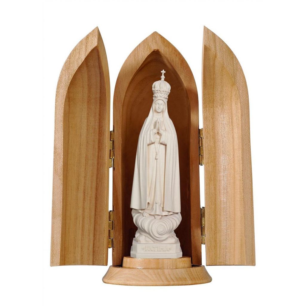 Drevená socha Panny Márie je nádherne maľovaná jemnými olejovými farbami a zlátená plátkovým zlatom. Dostupná vo farbe, alebo prevedení natur (prírodné drevo) v rôznych veľkostiach.