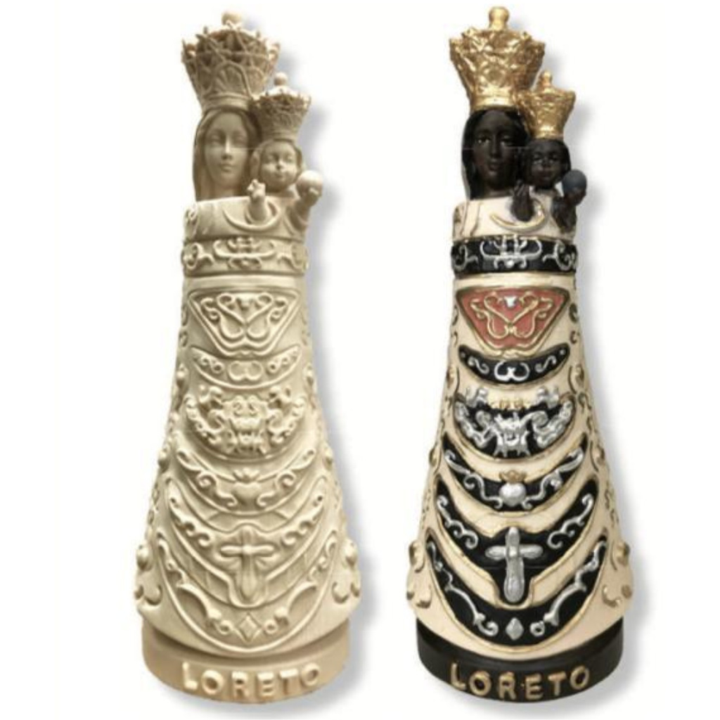 Naša socha Madony z Loreta je pocta tomuto zázračnému príbehu, ktoré inšpirovalo po celé veky. Ako symbol lásky a oddanosti medzi Pannou Máriou a jej Svätým dieťaťom, Ježišom, socha zachytáva podstatu posvätného vzťahu, ktorý prekonáva zemské hranice. Vytvorená s mimoriadnym umením, slúži ako krásna pripomienka zázrakov a tajomstiev, ktoré obklopujú životy Požehnanej Matky a jej milovaného Syna.