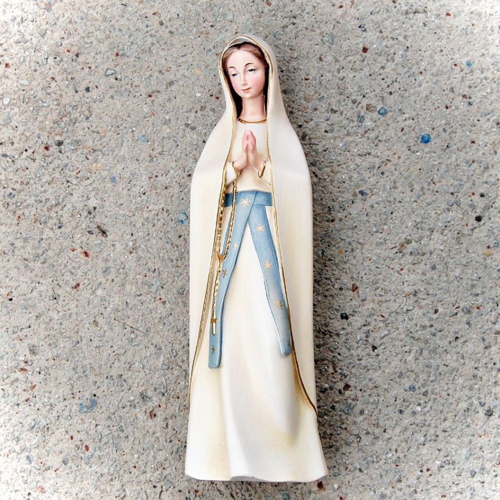 Panna Mária Lurdská je nádherne vyrezaná z masívneho dreva a ručne maľovaná jemnými olejovými farbami a zlátená plátkovým zlatom. Dostupná vo farbe, alebo prevedení natur (prírodné drevo) v rôznych veľkostiach.