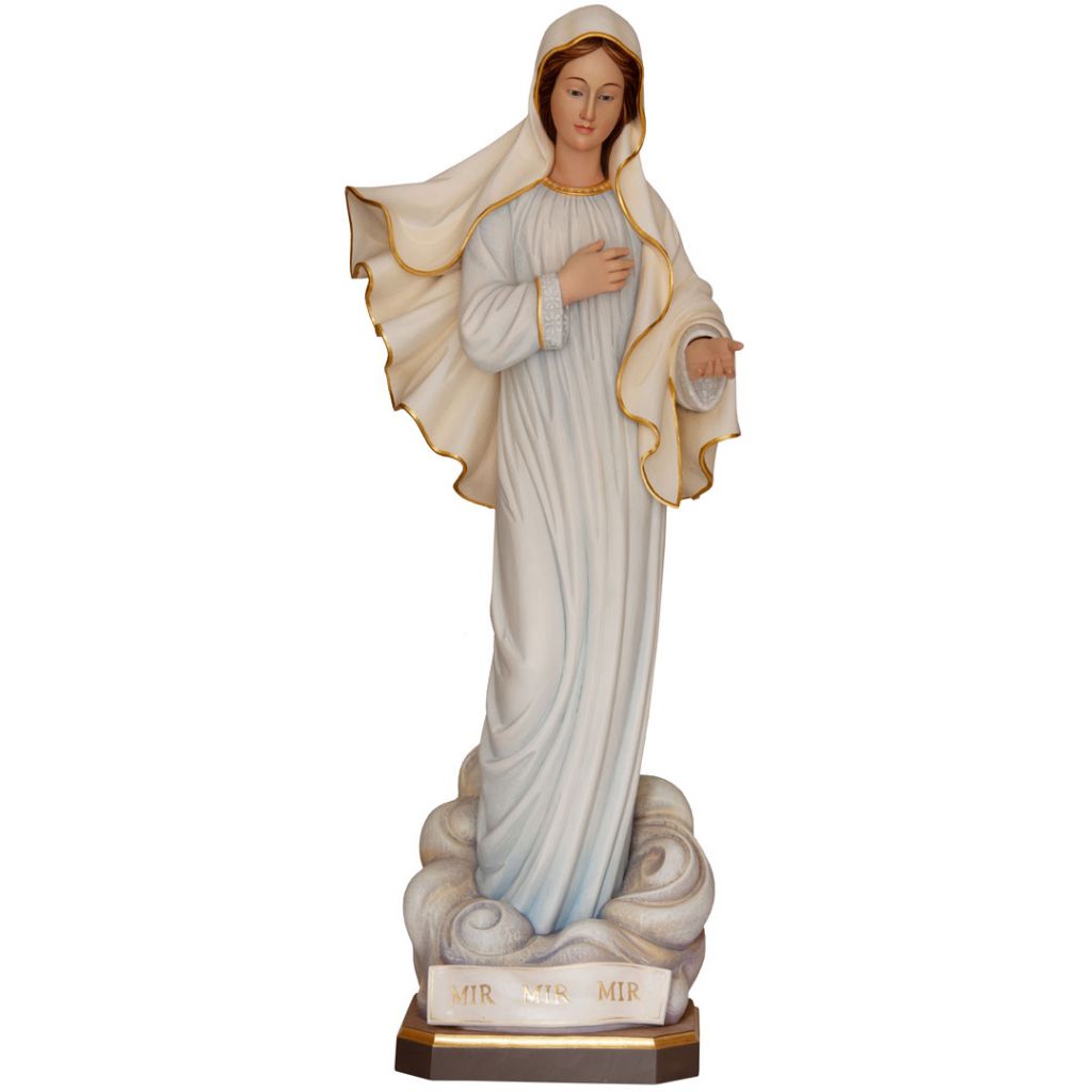 Drevená socha Panny Márie Medžugorskej je nádherne vyrezaná z javorového dreva, ručne maľovaná jemnými olejovými farbami a zlátená plátkovým zlatom.