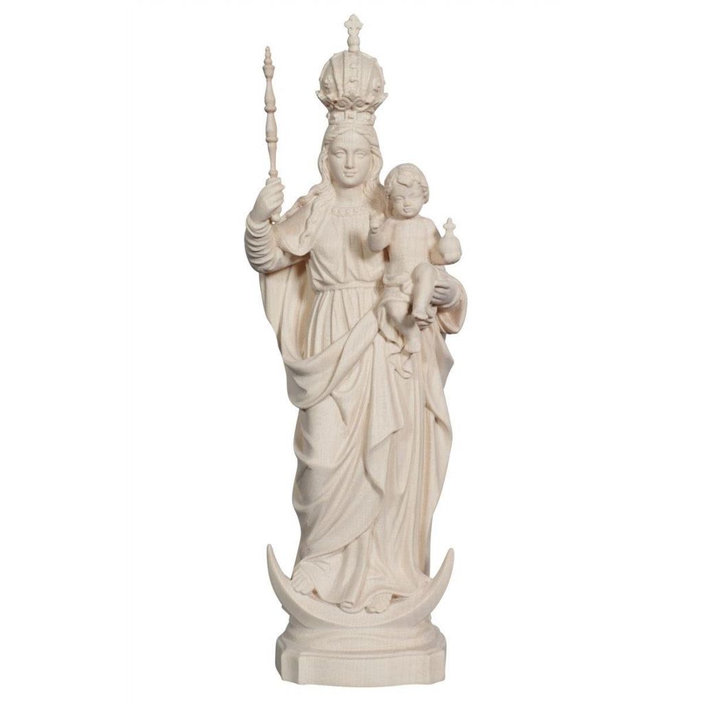 Drevená socha Panny Márie je nádherne maľovaná jemnými olejovými farbami a zlátená plátkovým zlatom. Dostupná vo farbe, alebo prevedení natur (prírodné drevo) v rôznych veľkostiach.