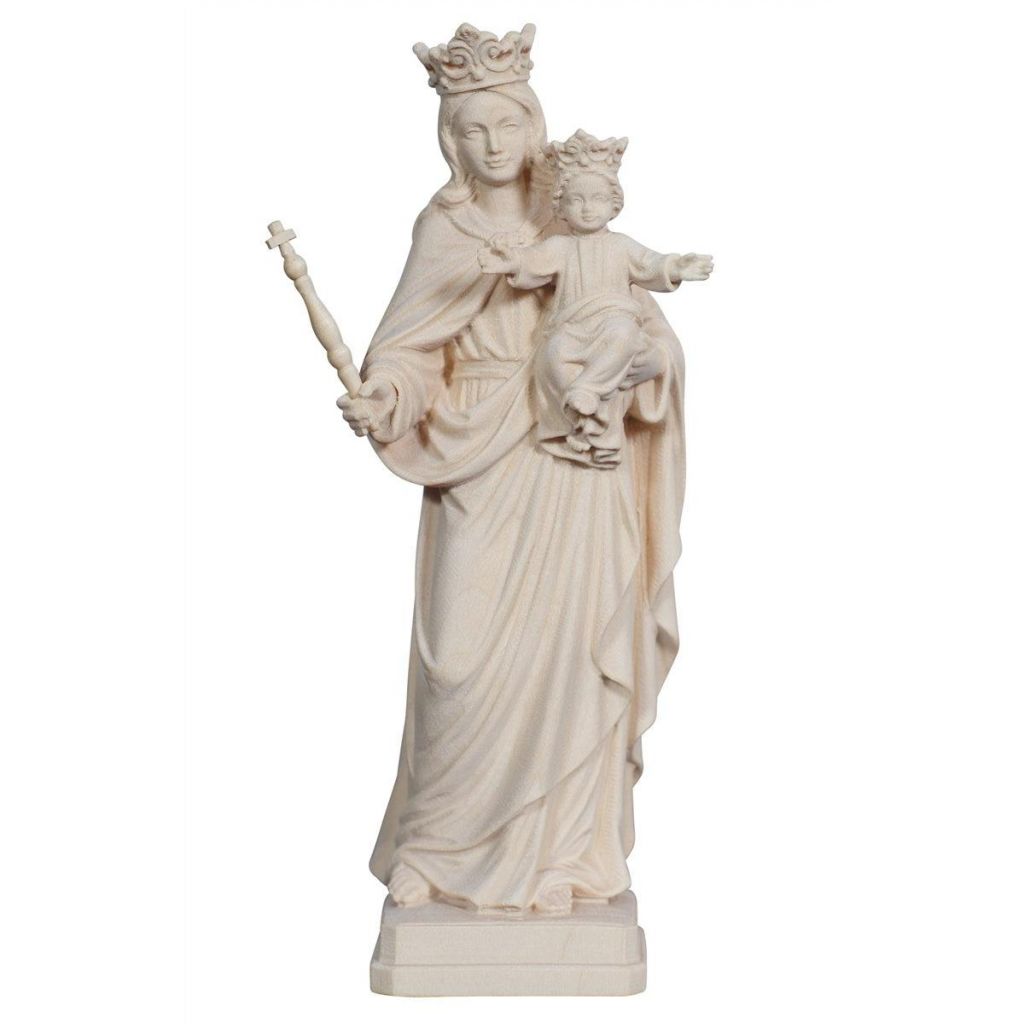 Drevená socha Panny Márie je nádherne maľovaná jemnými olejovými farbami a zlátená plátkovým zlatom. Dostupná vo farbe, alebo prevedení natur (prírodné drevo) v rôznych veľkostiach.