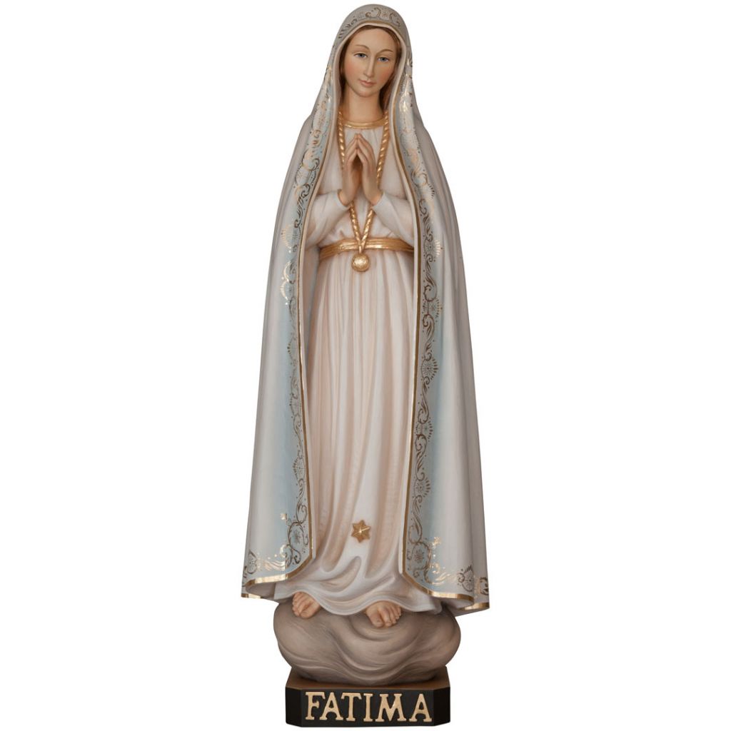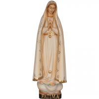 Drevená socha Panny Márie Pútnickej je nádherne vyrezaná z javorového dreva, ručne maľovaná jemnými olejovými farbami a zlátená plátkovým zlatom.