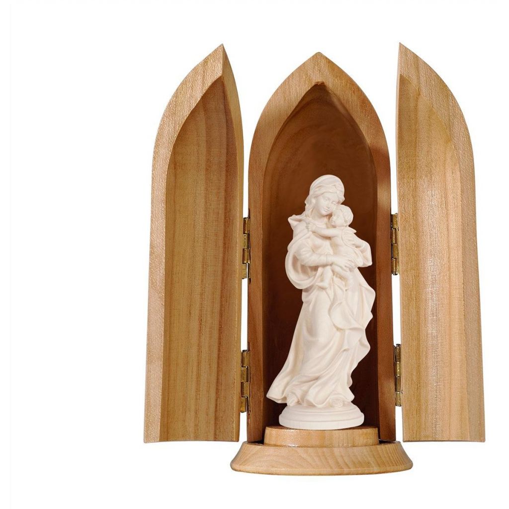 Drevená socha Panny Márie je nádherne maľovaná jemnými olejovými farbami a zlátená plátkovým zlatom. Dostupná vo farbe, alebo prevedení natur (prírodné drevo) v rôznych veľkostiach.