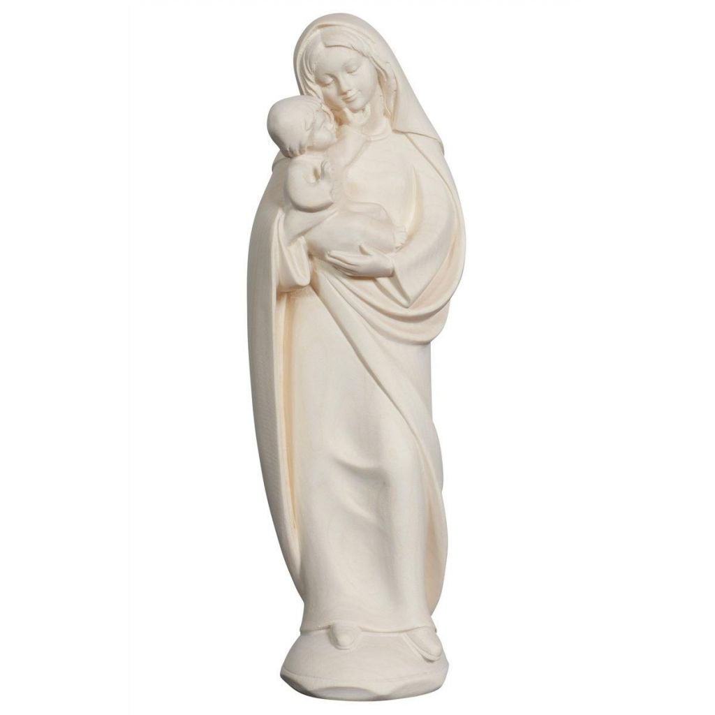 Drevená socha Panny Márie s dieťaťom je nádherne maľovaná jemnými olejovými farbami a zlátená plátkovým zlatom. Dostupná vo farbe, alebo prevedení natur (prírodné drevo) v rôznych veľkostiach.