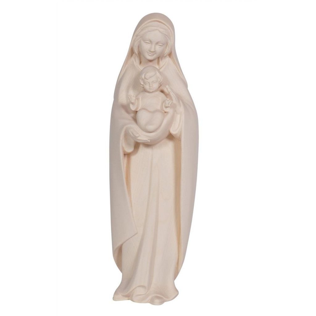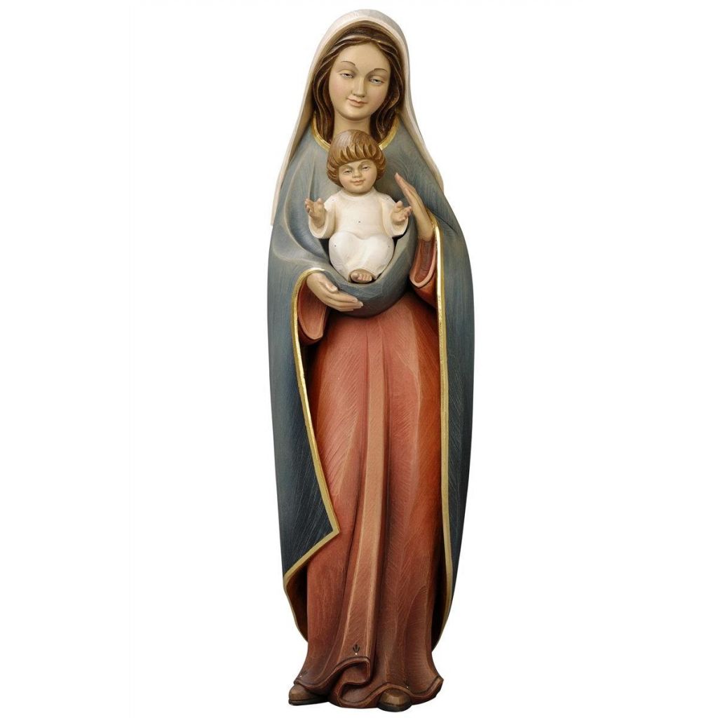 Drevená socha Panny Márie je nádherne maľovaná jemnými olejovými farbami a zlátená plátkovým zlatom. Dostupná vo farbe, alebo prevedení natur (prírodné drevo) v rôznych veľkostiach.