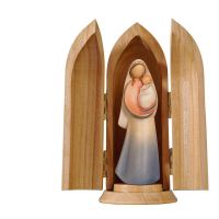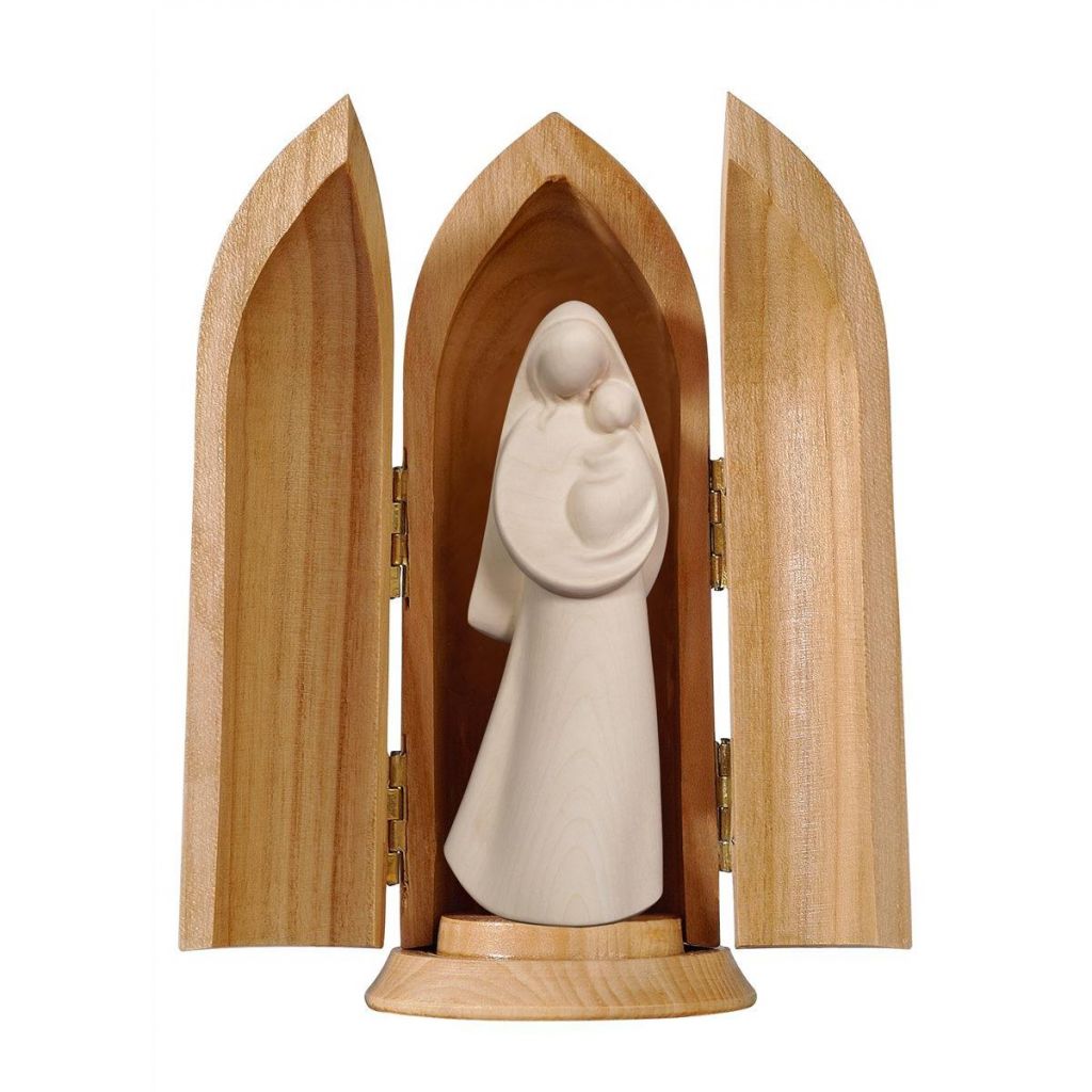 Drevená socha Panny Márie je nádherne maľovaná jemnými olejovými farbami a zlátená plátkovým zlatom. Dostupná vo farbe, alebo prevedení natur (prírodné drevo) v rôznych veľkostiach.