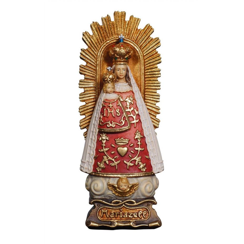 Drevená socha Panny Márie je nádherne maľovaná jemnými olejovými farbami a zlátená plátkovým zlatom. Dostupná vo farbe, alebo prevedení natur (prírodné drevo) v rôznych veľkostiach.