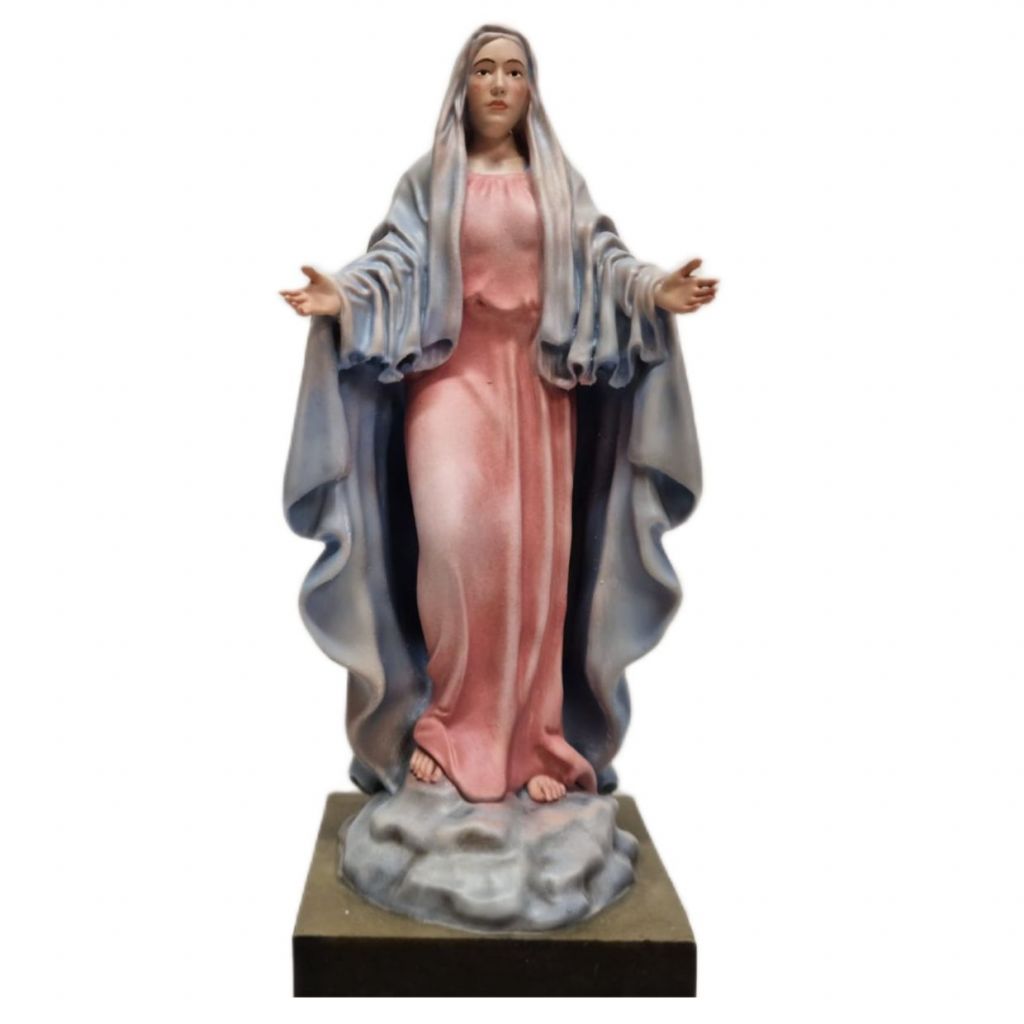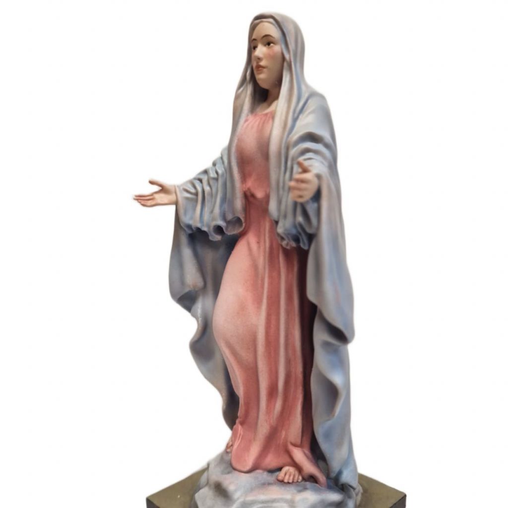Exkluzívne ručne maľované sväté sochy vyrobené z kvalitného materiálu Resina plast. Tento materiál sa vyznačuje vysokou odolnosťou a detailným spracovaním, čo umožňuje vytvárať jemné a realistické línie. Každá socha je originál – ručne maľovaná jemnými olejovými farbami do posledného detailu, s láskou a úctou k duchovnej symbolike. Vhodné do interiérov, modlitební, alebo ako darček s hlbokým významom.