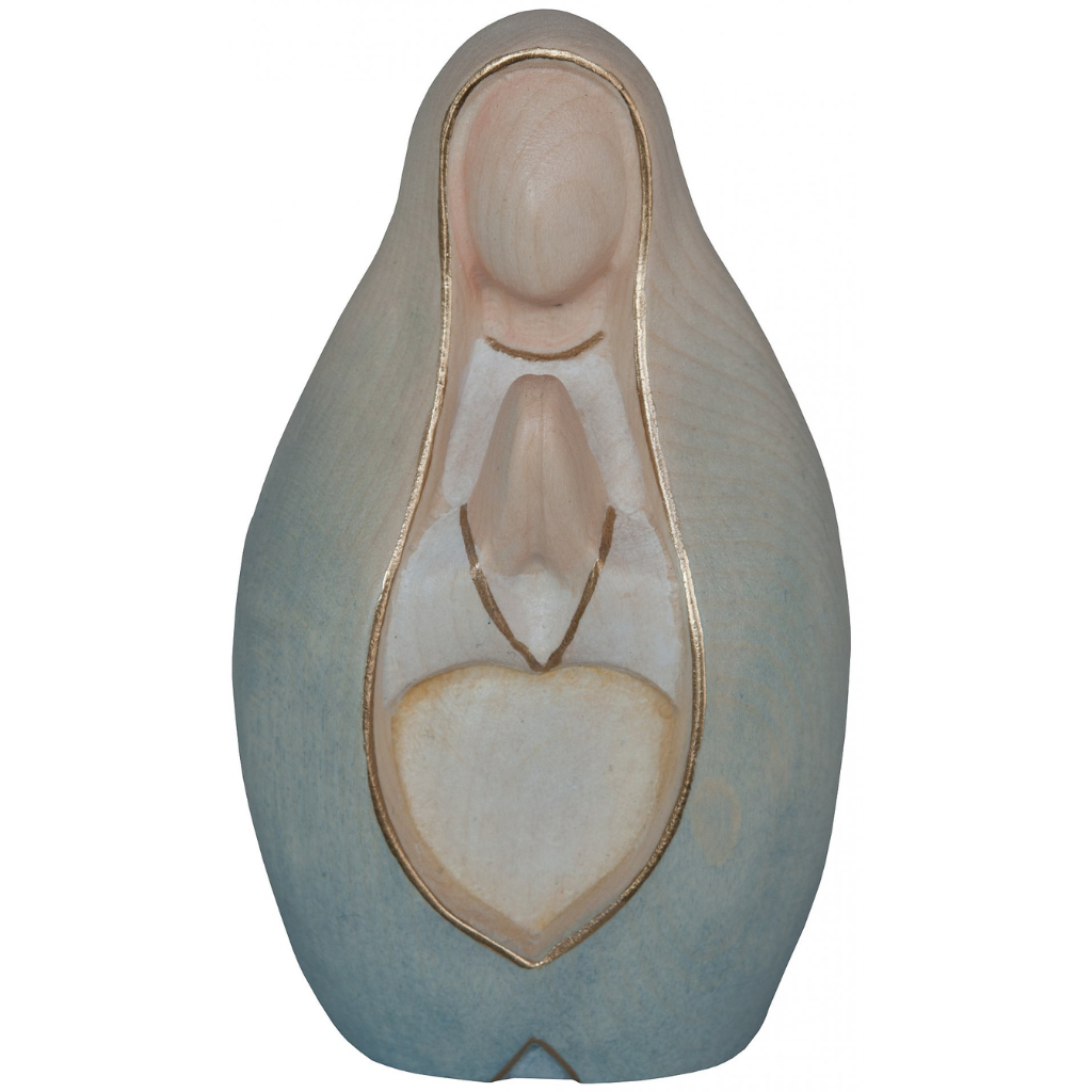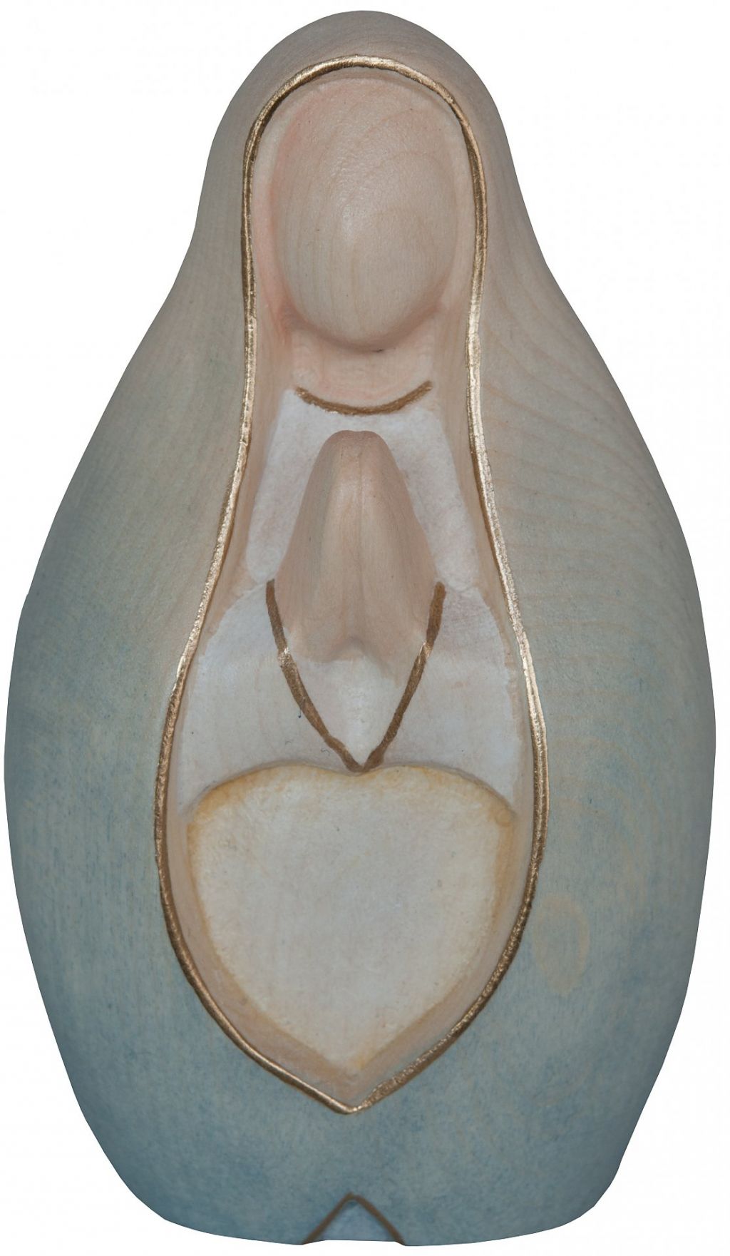 Drevená socha modliacej Panny Márie je nádherne vyrezaná z javorového dreva, ručne maľovaná jemnými olejovými farbami a zlátená plátkovým zlatom.