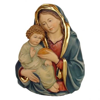 Reliéf Panna Mária je nádherne vyrezaná z javorového dreva, ručne maľovaná jemnými olejovými farbami a zlátená plátkovým zlatom. Dostupná vo farbe, alebo prevedení natur (prírodné drevo) v rôznych veľkostiach.