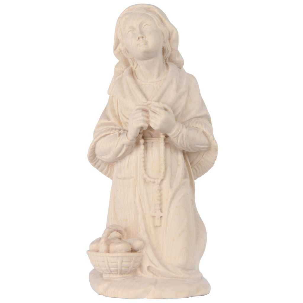 Svätá Bernadeta Soubirousová je nádherne vyrezaná z javorového dreva, ručne maľovaná jemnými olejovými farbami a zlátená plátkovým zlatom. Dostupná vo farbe, alebo prevedení natur (prírodné drevo) v rôznych veľkostiach.