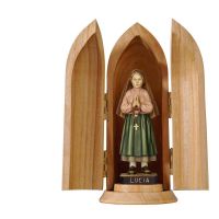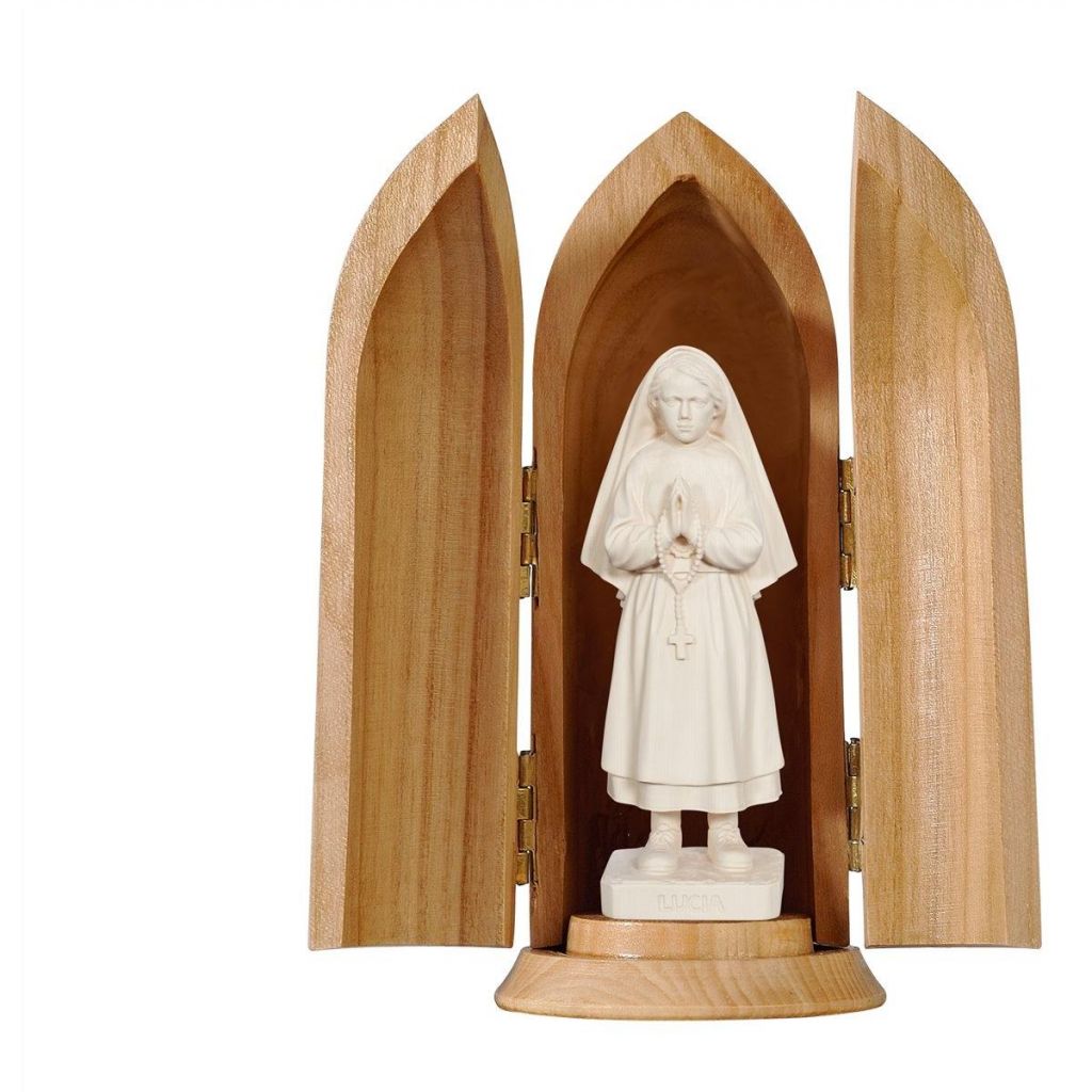 Drevená socha je nádherne maľovaná jemnými olejovými farbami a zlátená plátkovým zlatom. Dostupná vo farbe alebo prevedení natur (prírodné drevo) v rôznych veľkostiach.